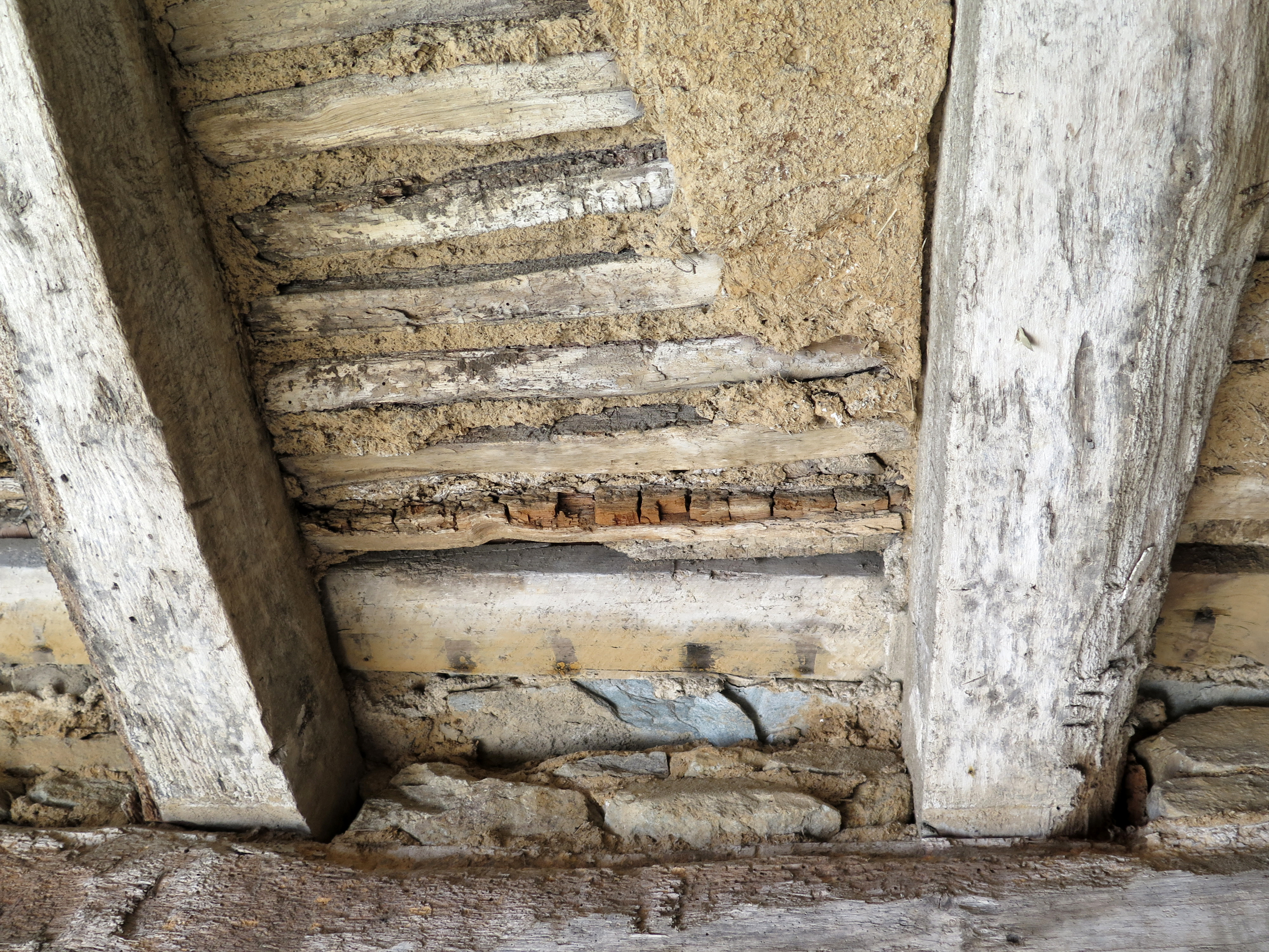Corps de logis. Vestibule d'entrée. Détail du plafond à quenouillesImmatriculation