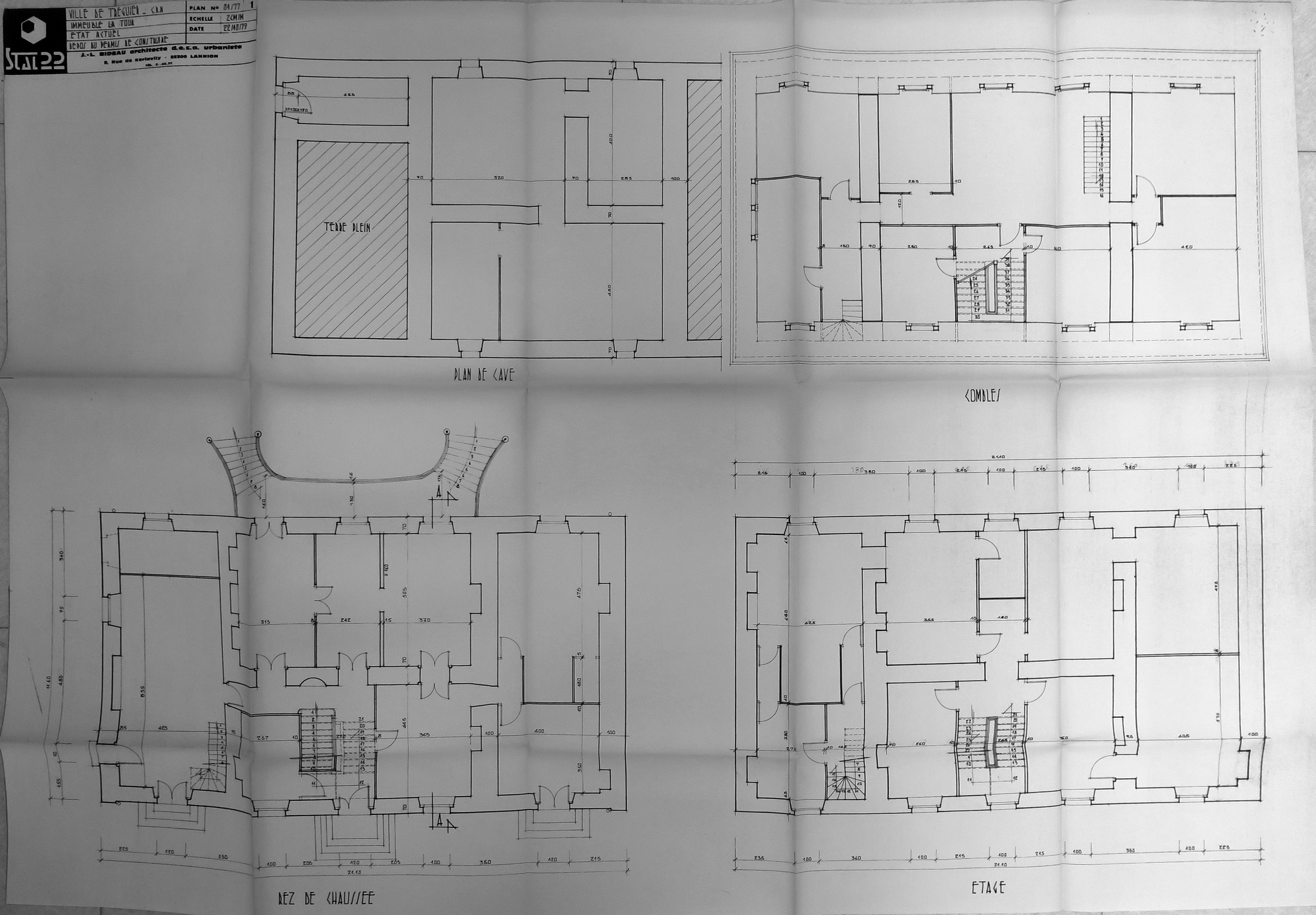Projet de transformation en immeuble à logements de l'Hôtel de La Tour par l'architecte Jean-Louis Bideau, plan général, 22 octobre 1979 (Archives municipales de Tréguier, 6M6)Immatriculation