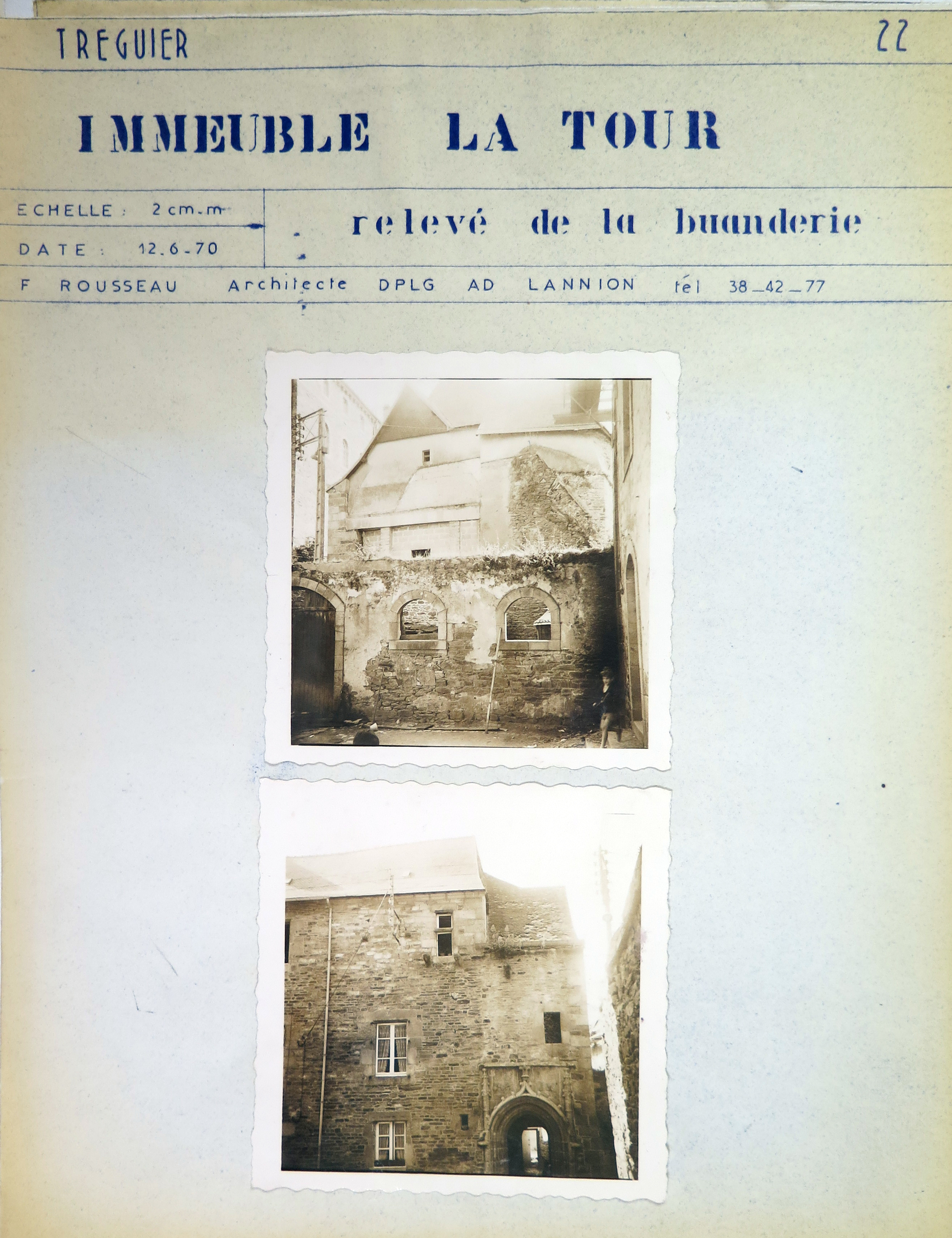 Buanderie de l'immeuble à logements dit Hôtel de La Tour par l'architecte F. Rousseau, photographies, 12 juin 1970 (Archives municipales de Tréguier, 6M5)Immatriculation