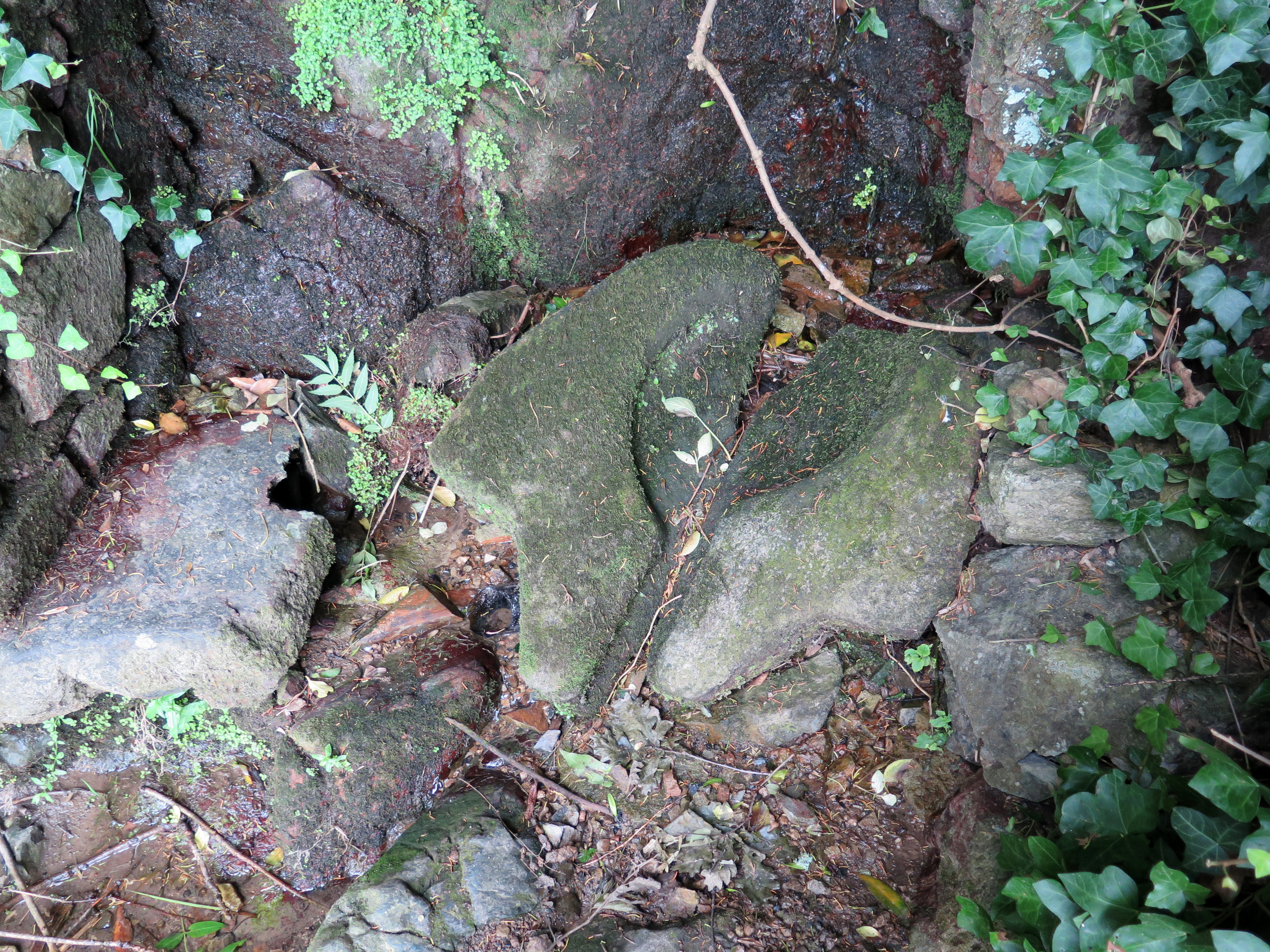 Tréguier : fontaine et lavoir situés le long du Guindy, vue de détail de la fontaine, pierre sculptéeImmatriculation