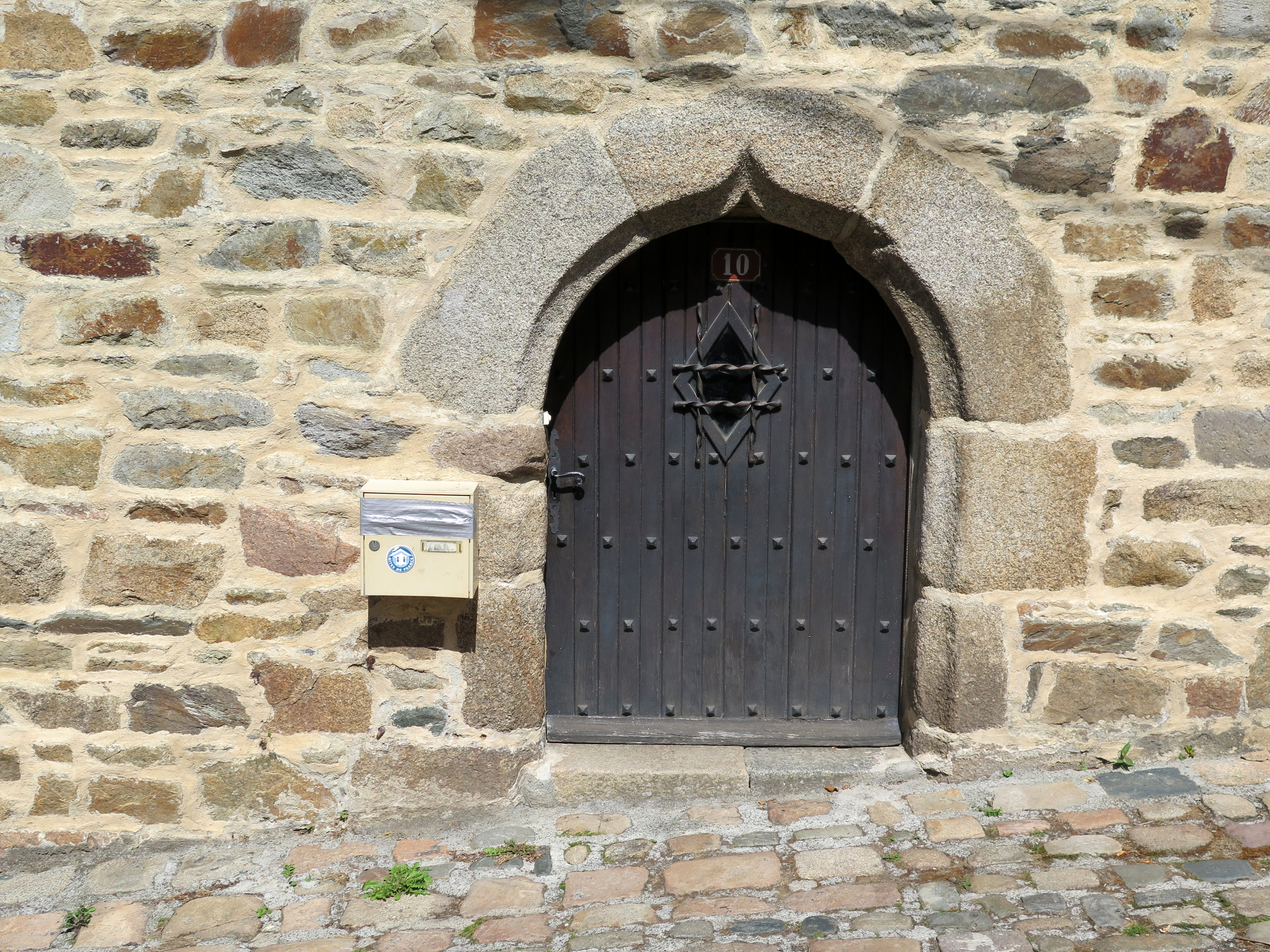 Tréguier, 10 rue Saint-François : maison, détail de la porte avec linteau en accolade et chanfrein (fin du 15e siècle-16e siècle)Immatriculation