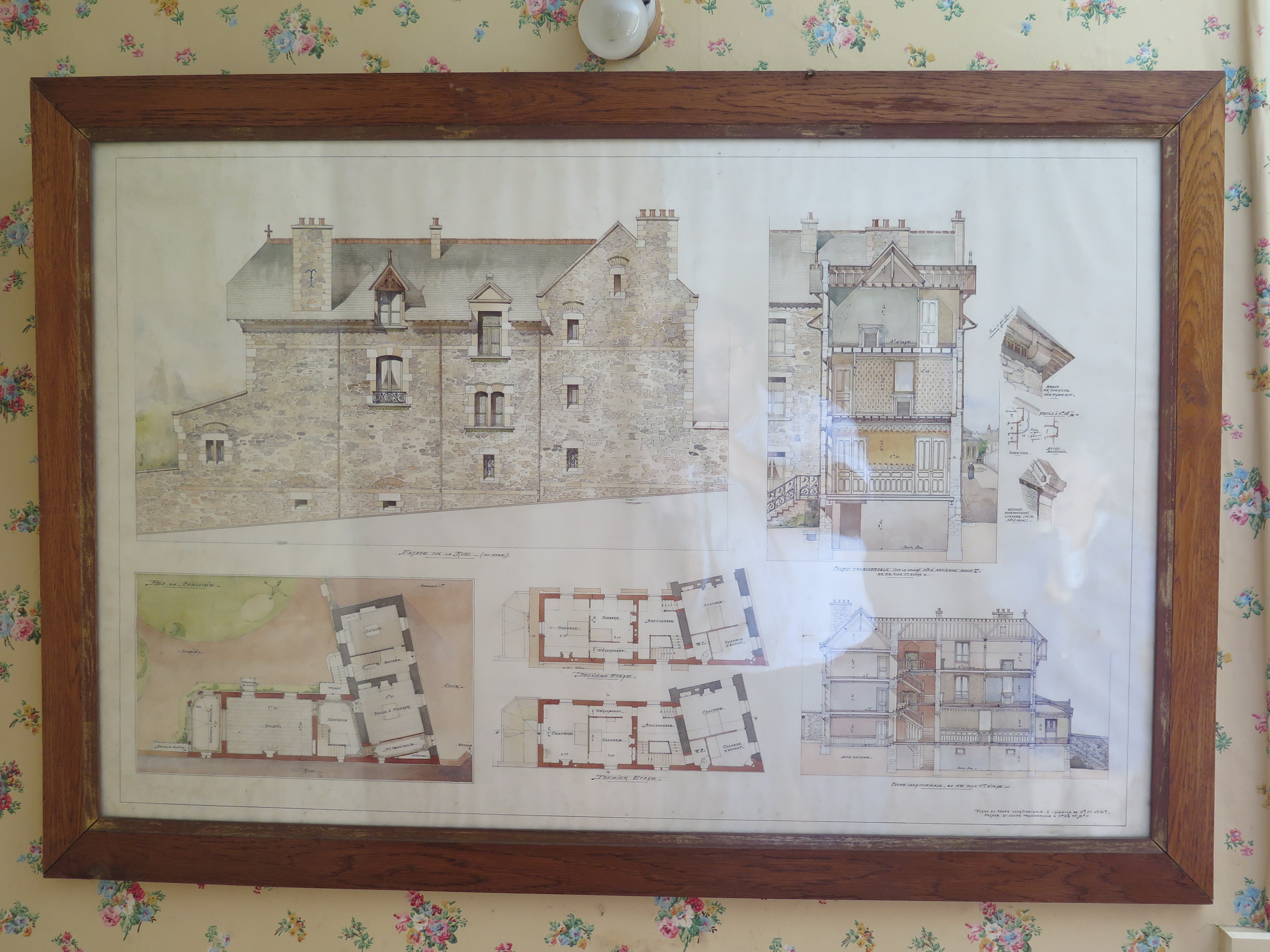 Tréguier, 8 rue Lamennais : maison, plan et coupe longitudinale, façade et coupe transversale par Émile Brunet, architecte, Paris, 4 avril 1904 (collection particulière, planche n° 1)Immatriculation