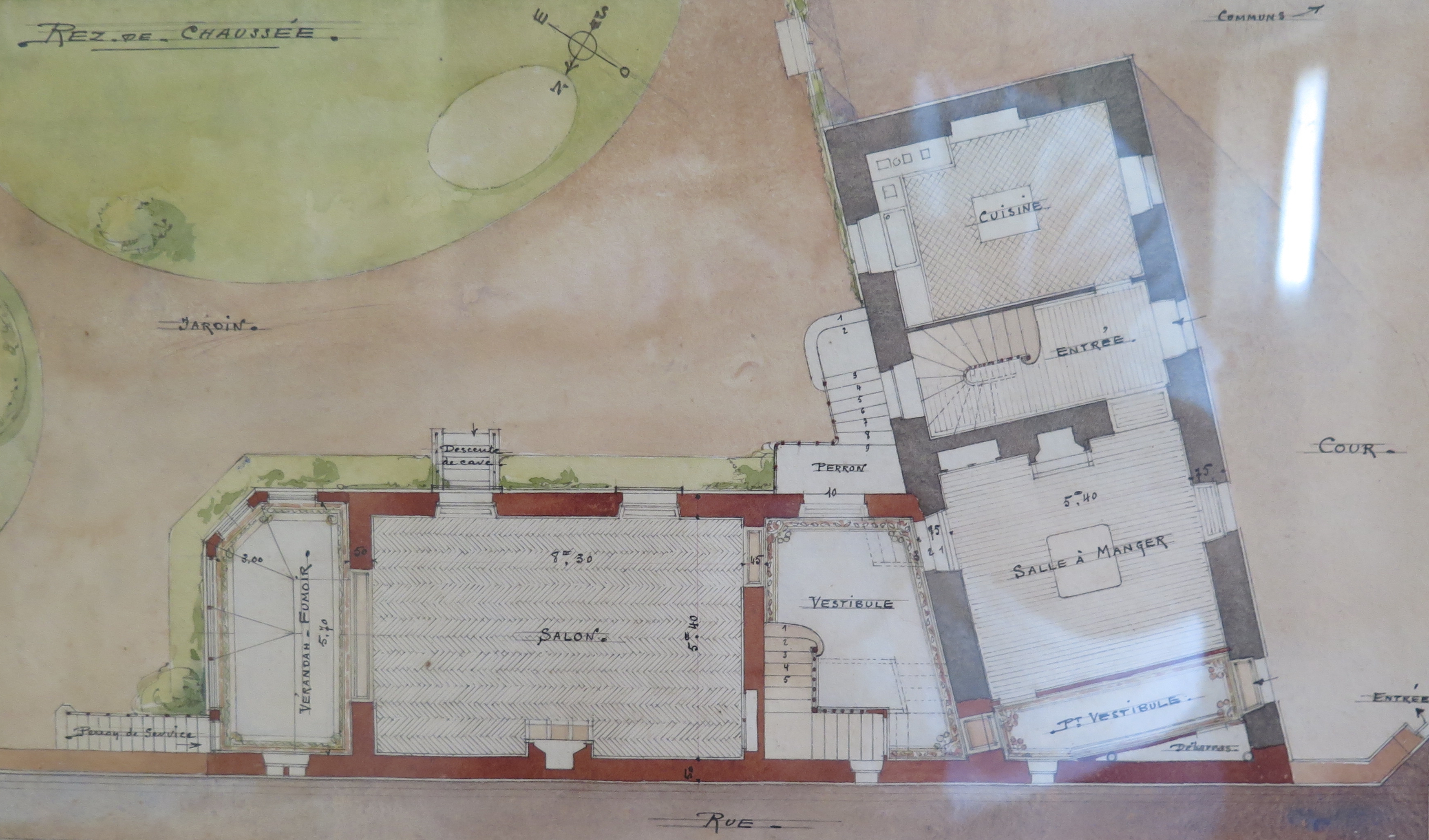 Tréguier, 8 rue Lamennais : maison, plan du rez-de-chaussée par Émile Brunet, architecte, Paris, 4 avril 1904 (collection particulière, planche n° 1)Immatriculation