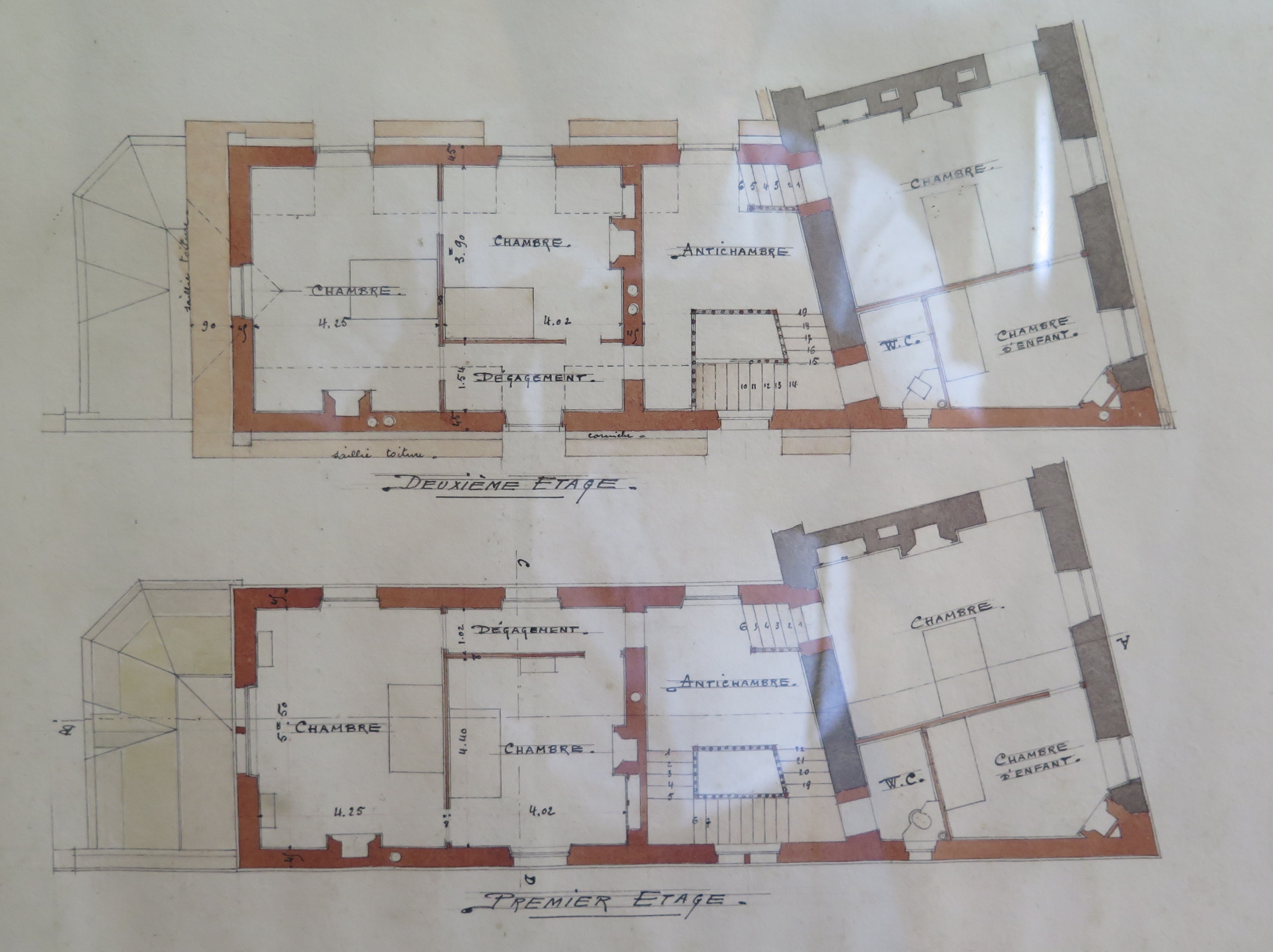 Tréguier, 8 rue Lamennais : maison, plan du premier et du deuxième étage par Émile Brunet, architecte, Paris, 4 avril 1904 (collection particulière, planche n° 1)Immatriculation