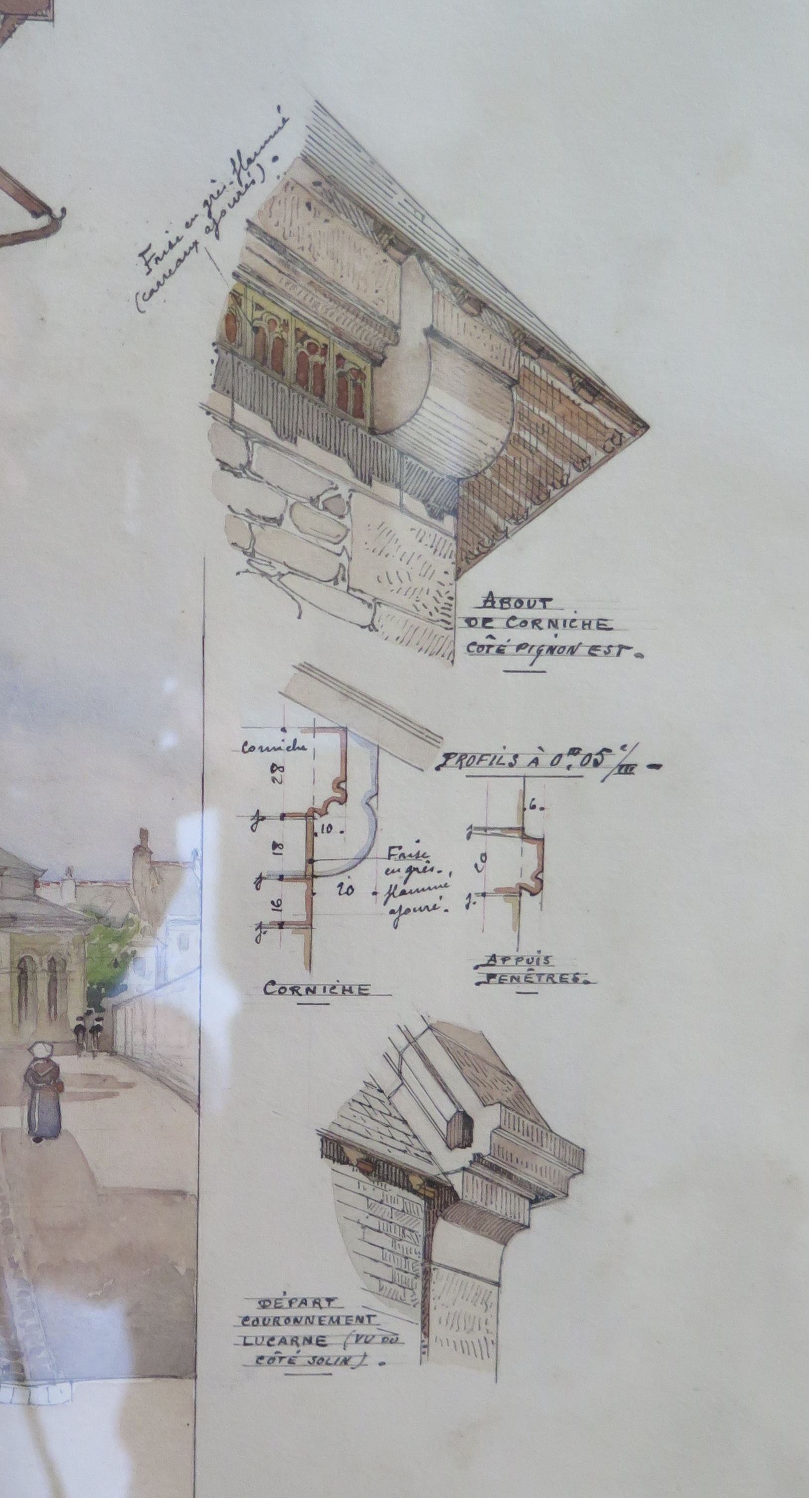 Tréguier, 8 rue Lamennais : maison, détails de finition de la corniche par Émile Brunet, architecte, Paris, 4 avril 1904 (collection particulière, planche n° 1)Immatriculation