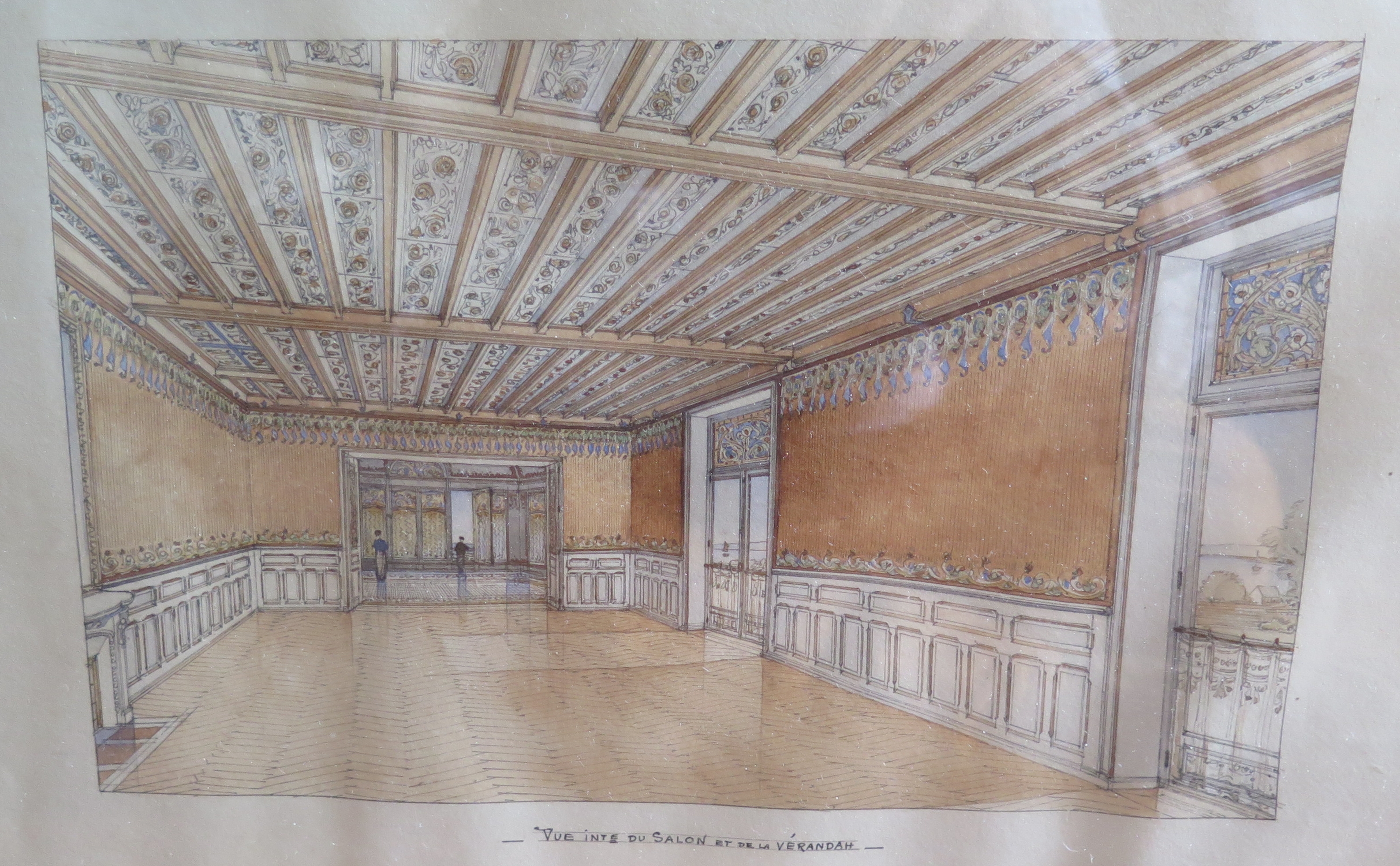 Tréguier, 8 rue Lamennais : maison, vue perspective du grand salon par Émile Brunet, architecte, Paris, 4 avril 1904 (collection particulière, planche n° 2)Immatriculation