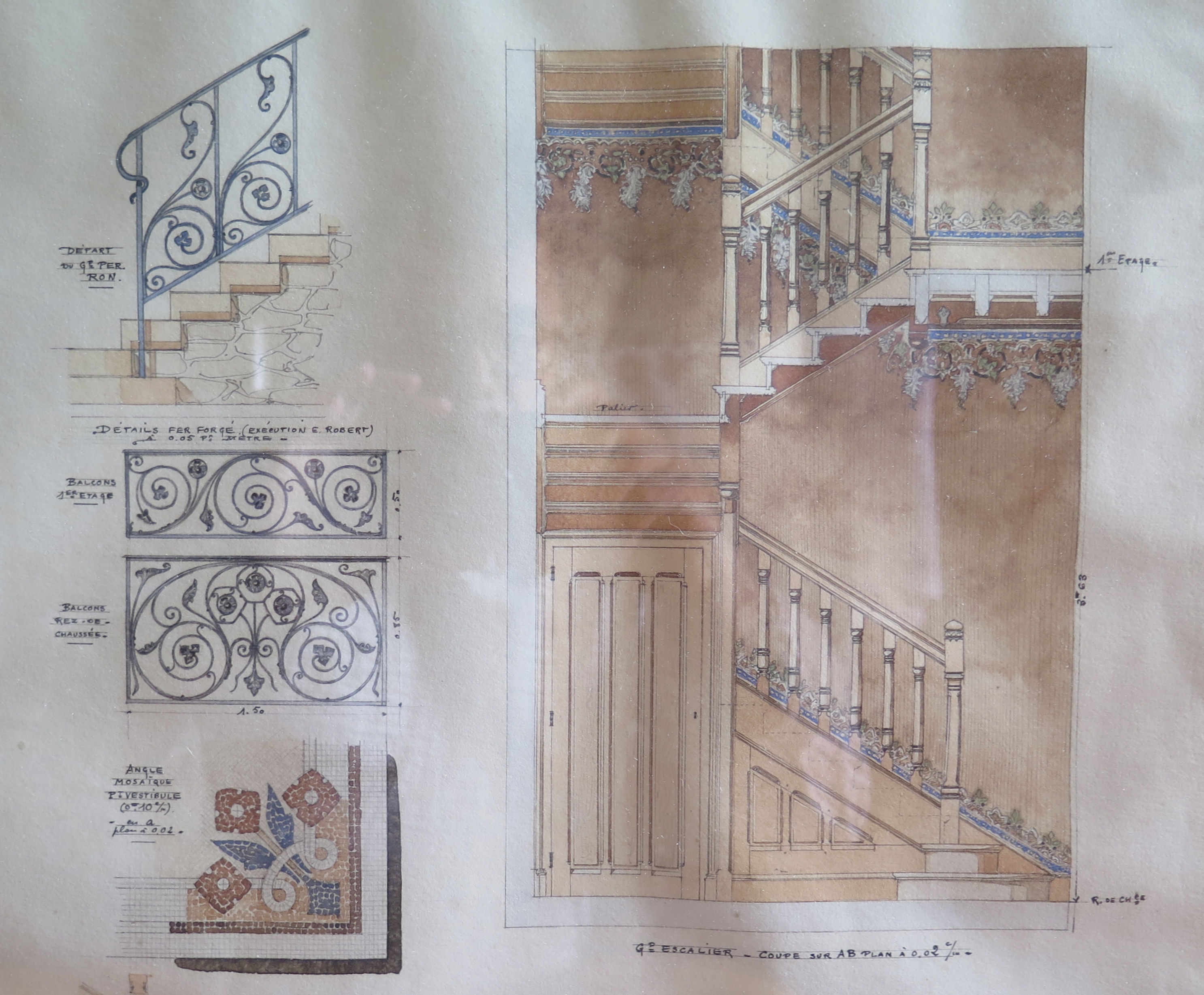 Tréguier, 8 rue Lamennais : maison, ferronnerie et cage d'escalier, détails par Émile Brunet, architecte, Paris, 4 avril 1904 (collection particulière, planche n° 2)Immatriculation