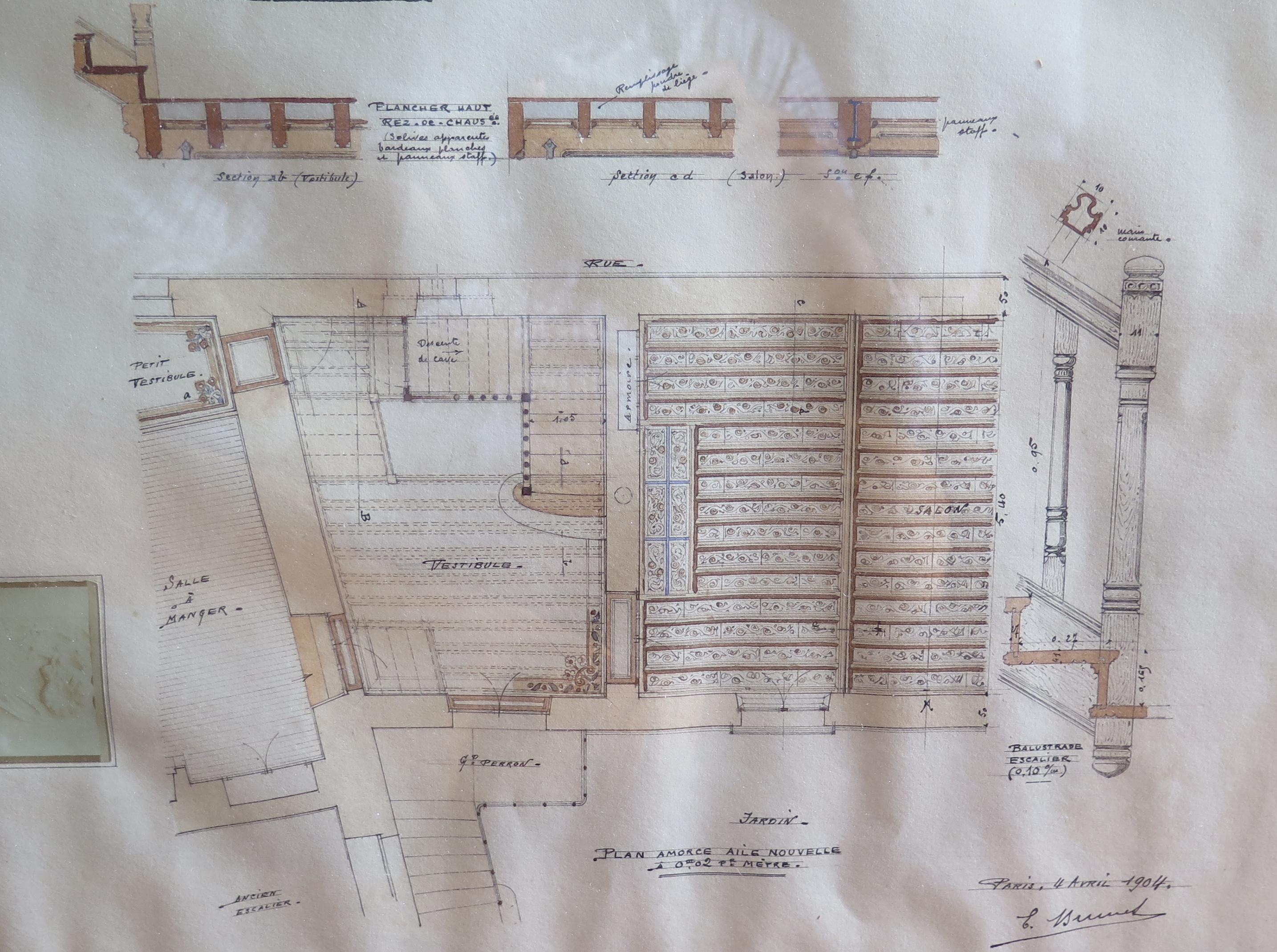 Tréguier, 8 rue Lamennais : maison, grand salon à caisson, détails par Émile Brunet, architecte, Paris, 4 avril 1904 (collection particulière, planche n° 2)Immatriculation