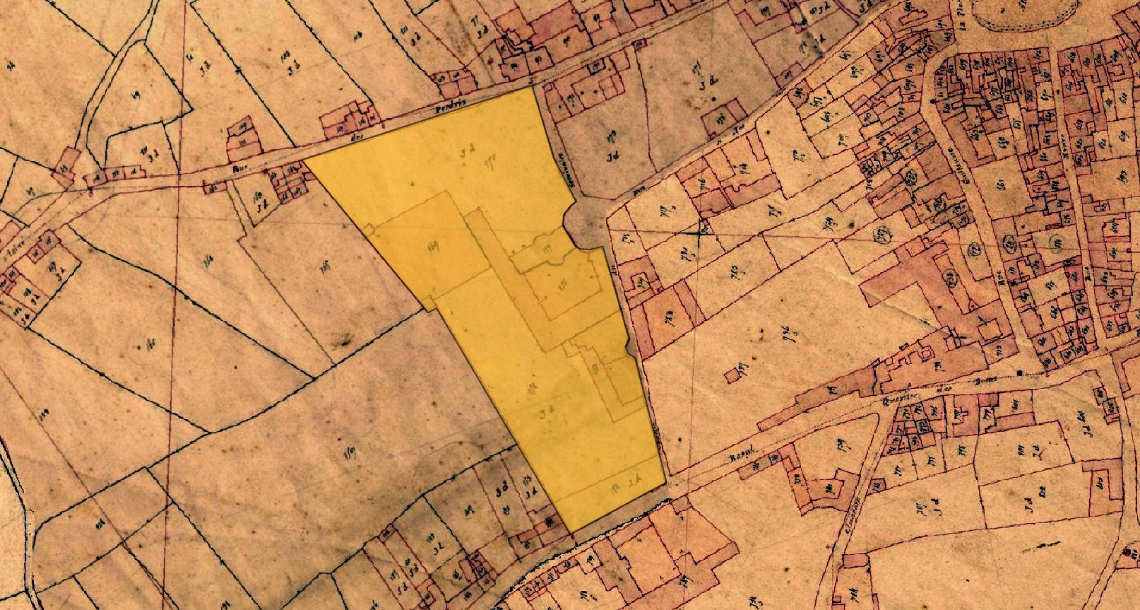 La ville de Tréguier en 1834. Extrait de la section A1 du cadastre ancien : en jaune, le périmètre de l'école ecclésiastique puis petit séminaire (Archives départementales des Côtes-d'Armor, série 3P 362/2)Immatriculation