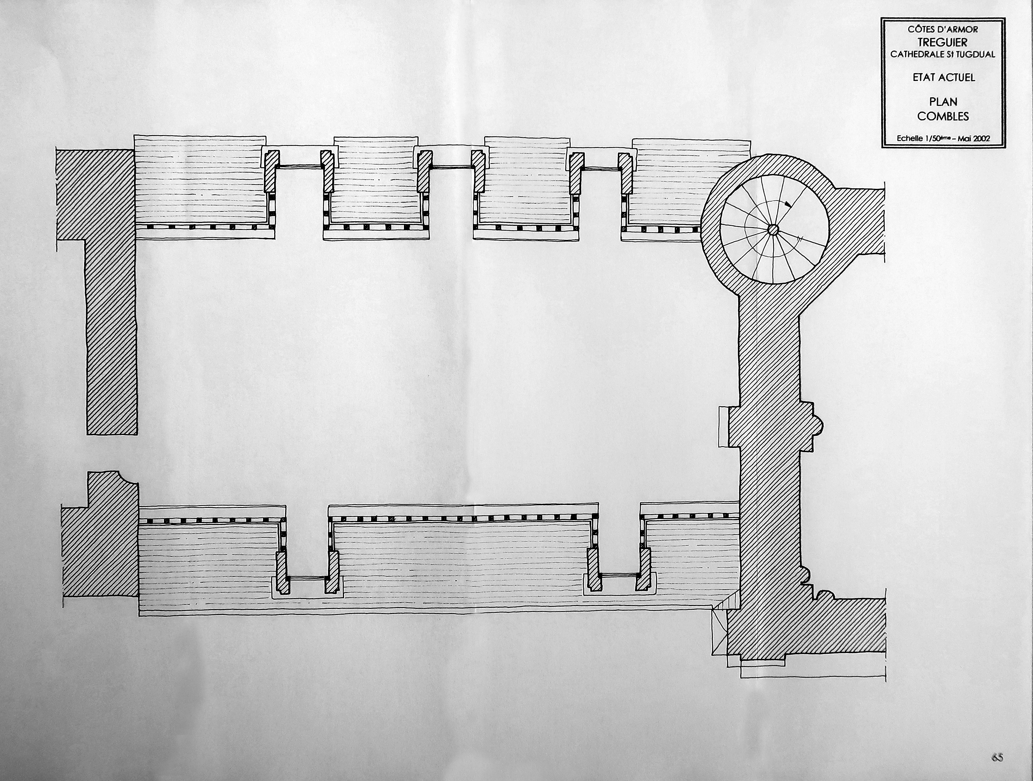 Tréguier : sacristie de la cathédrale Saint-Tugdual, plan de l'étage de comble (extrait de l'étude de mise en sécurité et de mise en valeur de la sacristie de Tréguier sous la direction de Marie-Suzanne de Ponthaud, architecte en chef des monuments historiques, 2002)Immatriculation