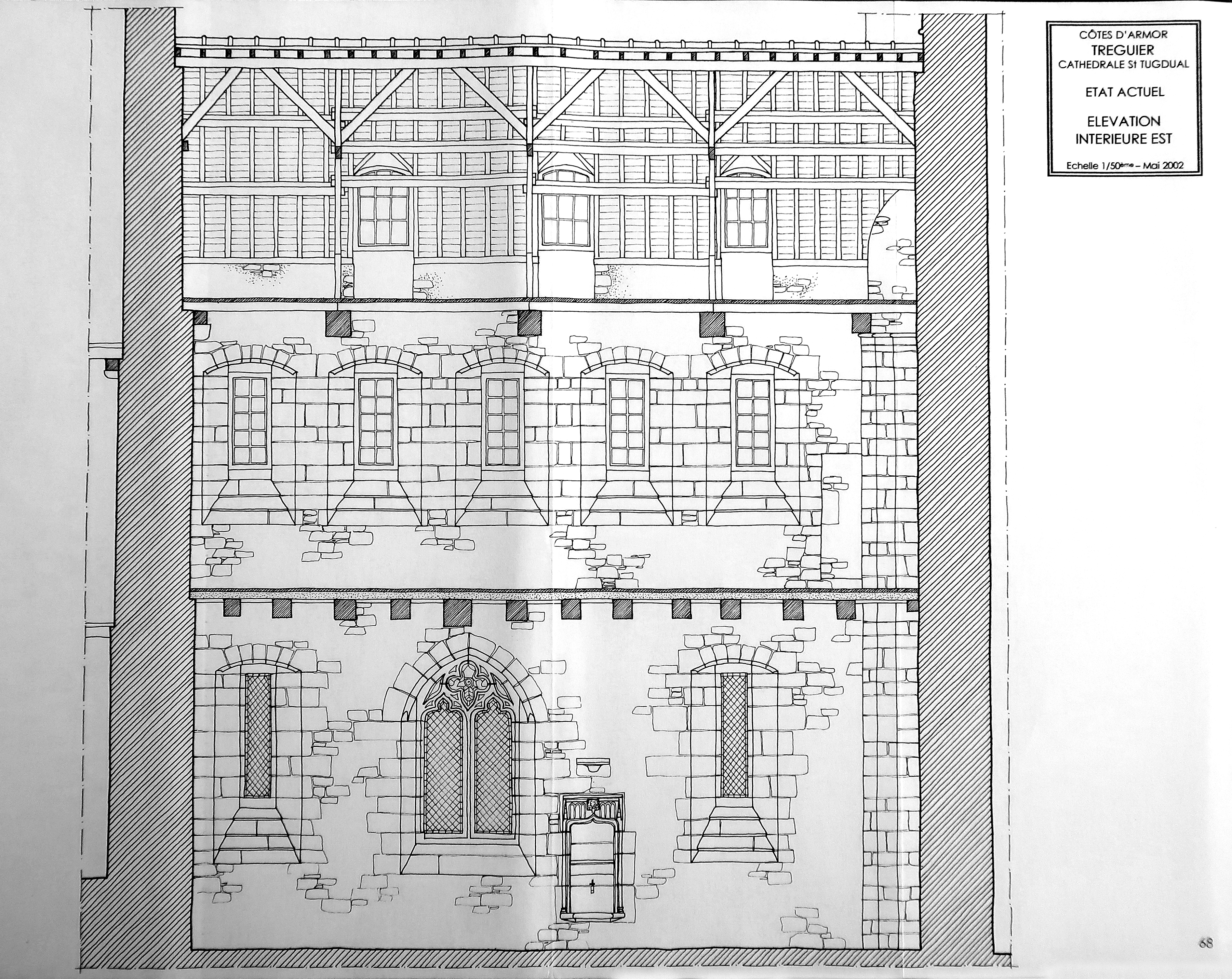 Tréguier : sacristie de la cathédrale Saint-Tugdual, élévation intérieure est (extrait de l'étude de mise en sécurité et de mise en valeur de la sacristie de Tréguier sous la direction de Marie-Suzanne de Ponthaud, architecte en chef des monuments historiques, 2002)Immatriculation