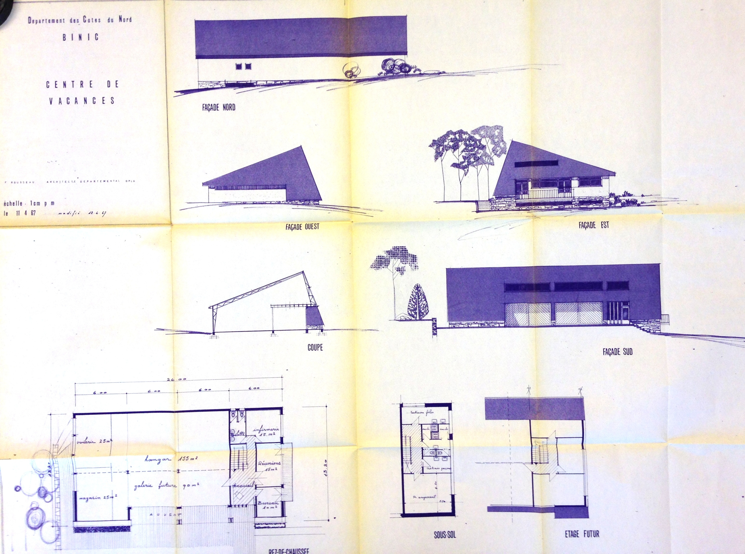AD Côtes-d'Armor : 1126 W 15. Plan, coupe, façades. F. Rousseau, 1970.