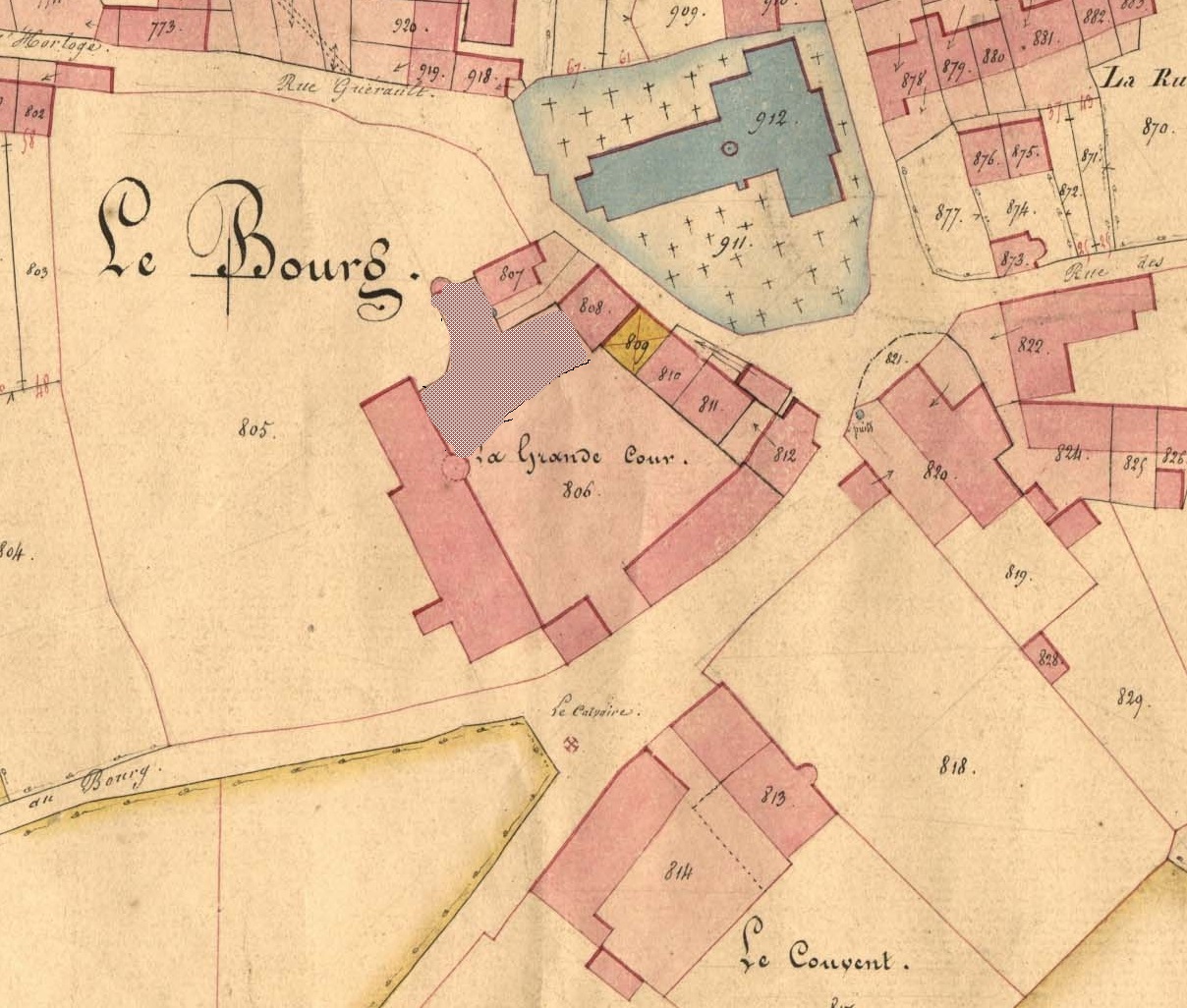 Extrait du cadastre de 1843, avec implantation présumée du manoir disparuImmatriculation
