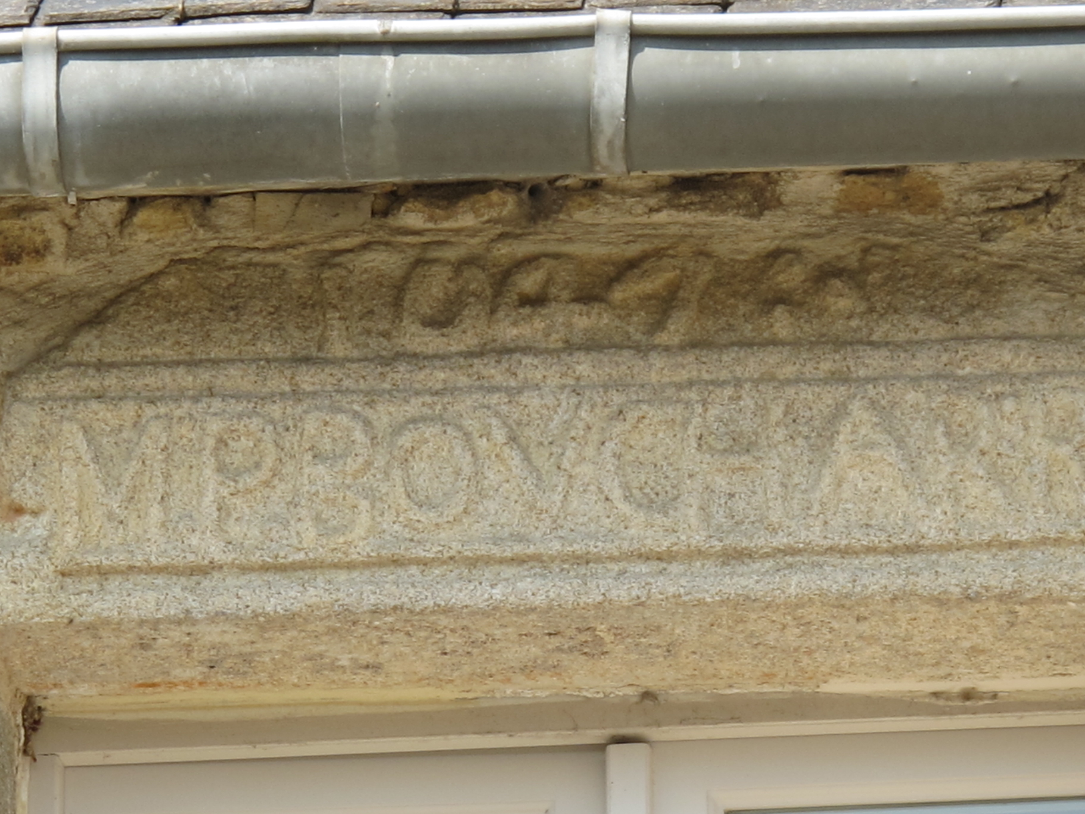Linteau de la fenêtre de l'étage portant date : 1647 et inscription : M.P BOUCHARREImmatriculation