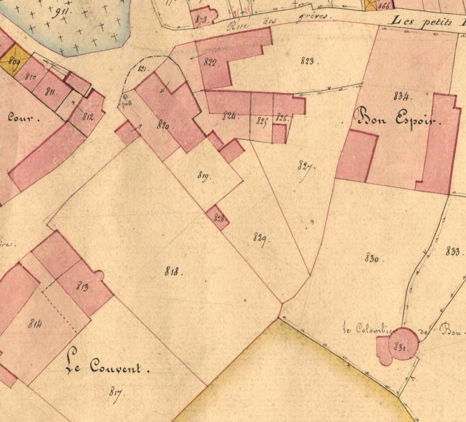 Extrait du cadastre de 1843, parcelles 819-821Immatriculation