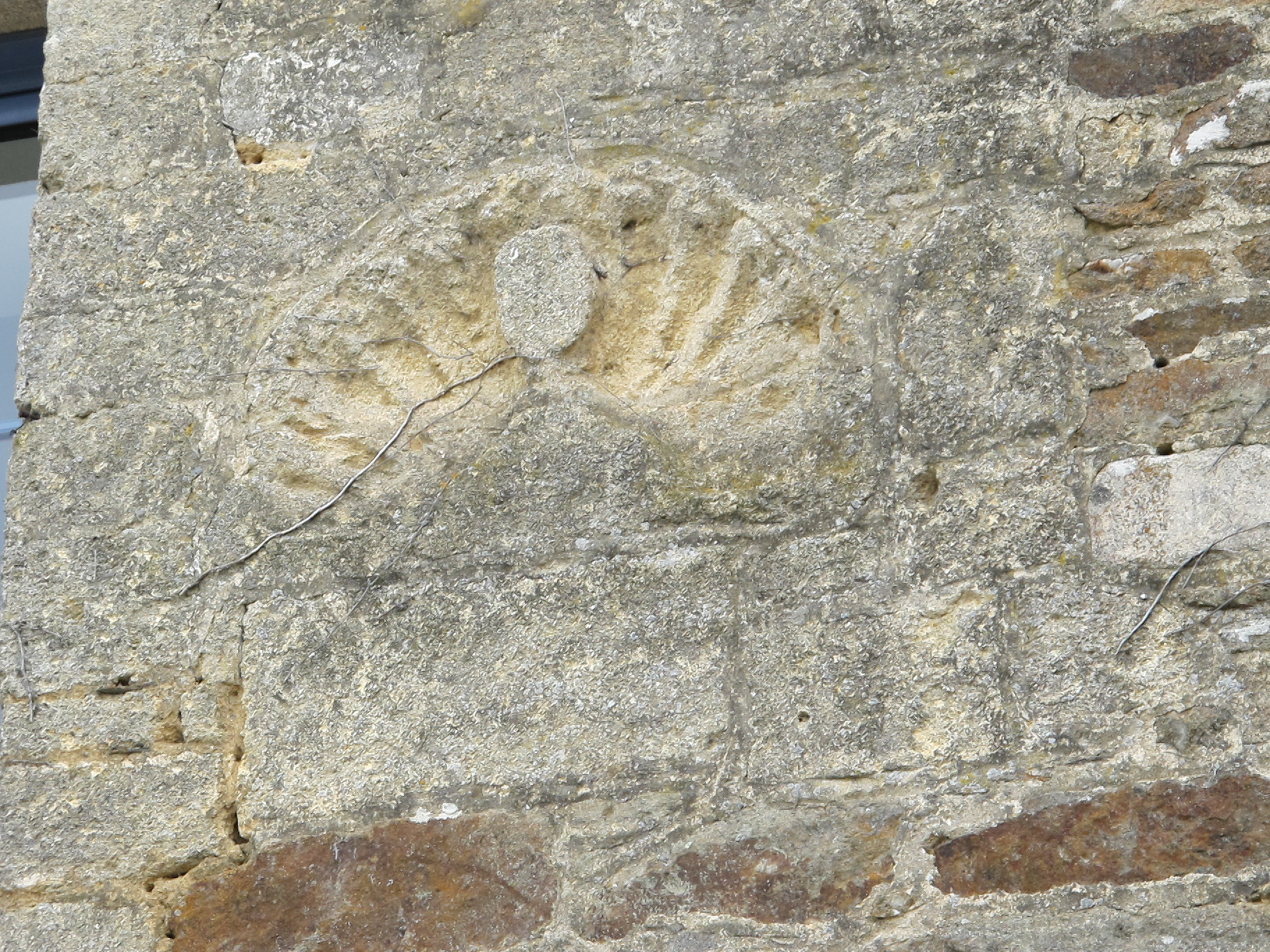Ancienne chapellenie ste Anne, détail, remploi d'une pierre sculptée d'une coquille renaissanceImmatriculation
