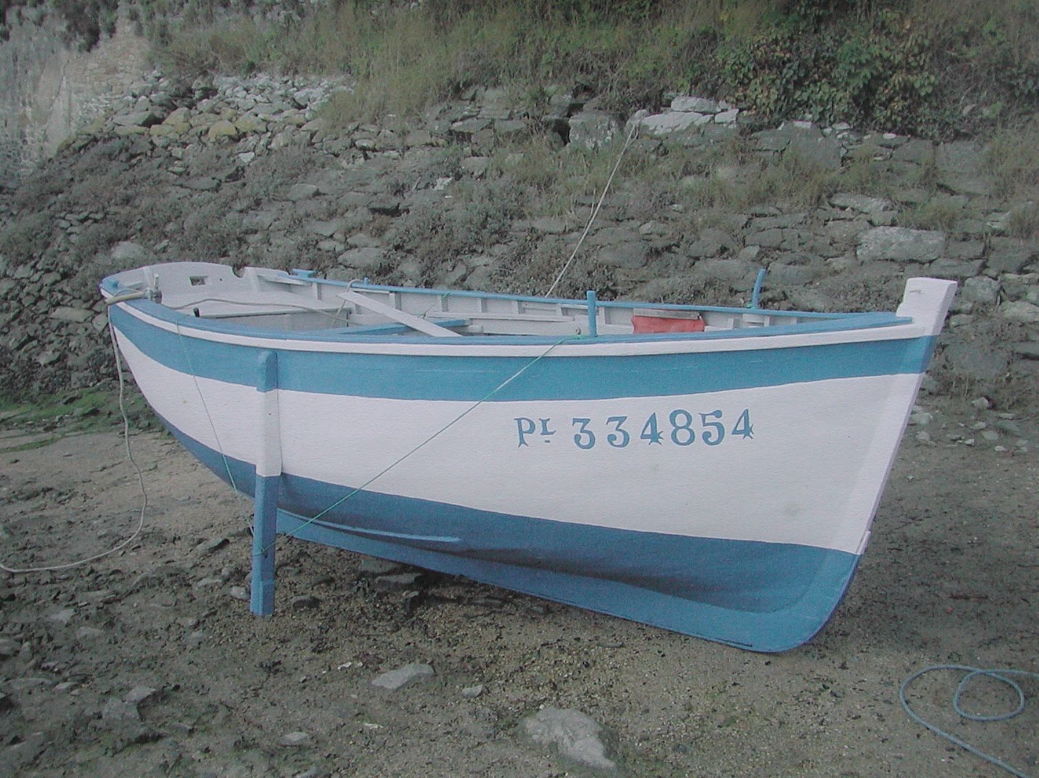 Vue du canot "Louiten" construit par Yves Monfort d'après un relevé de coque du chantier BernardImmatriculation