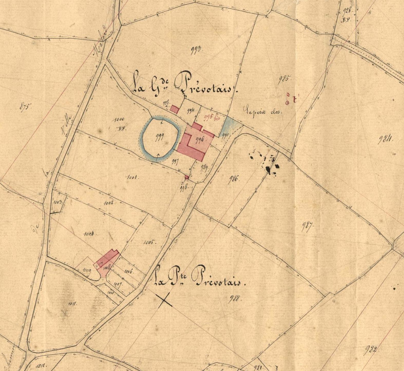 Motte de la Grande Prévotais, extrait du cadastre de 1844Immatriculation