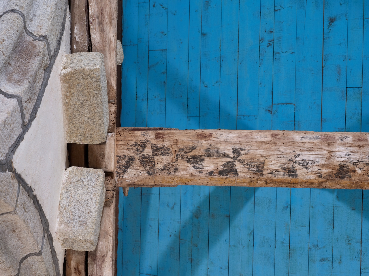 Charpente du bas côté sud, entrait à décor gironnéImmatriculation