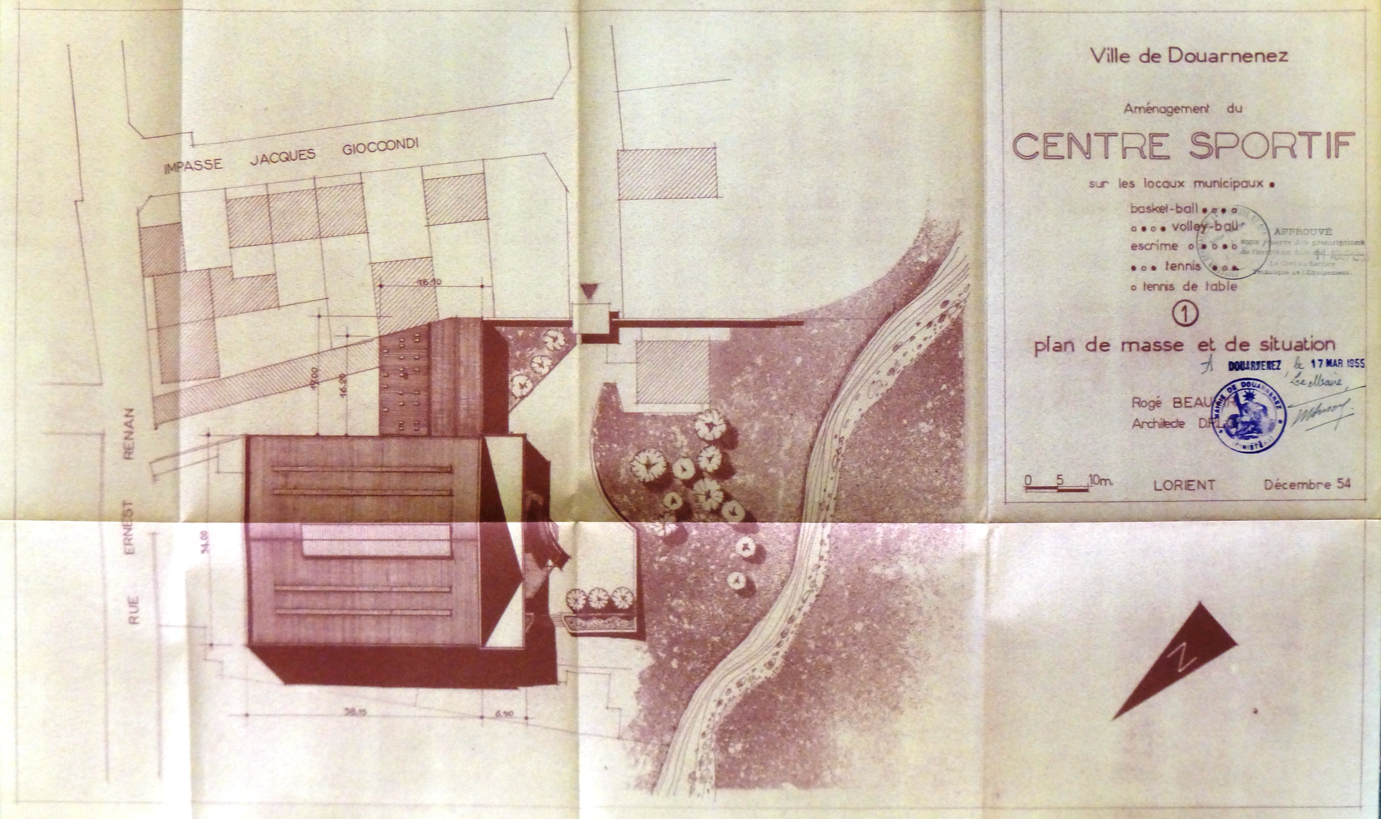 AD Finistère : 78 W 4. Plan de masse et de situation. R. Beauvir, décembre 1954.