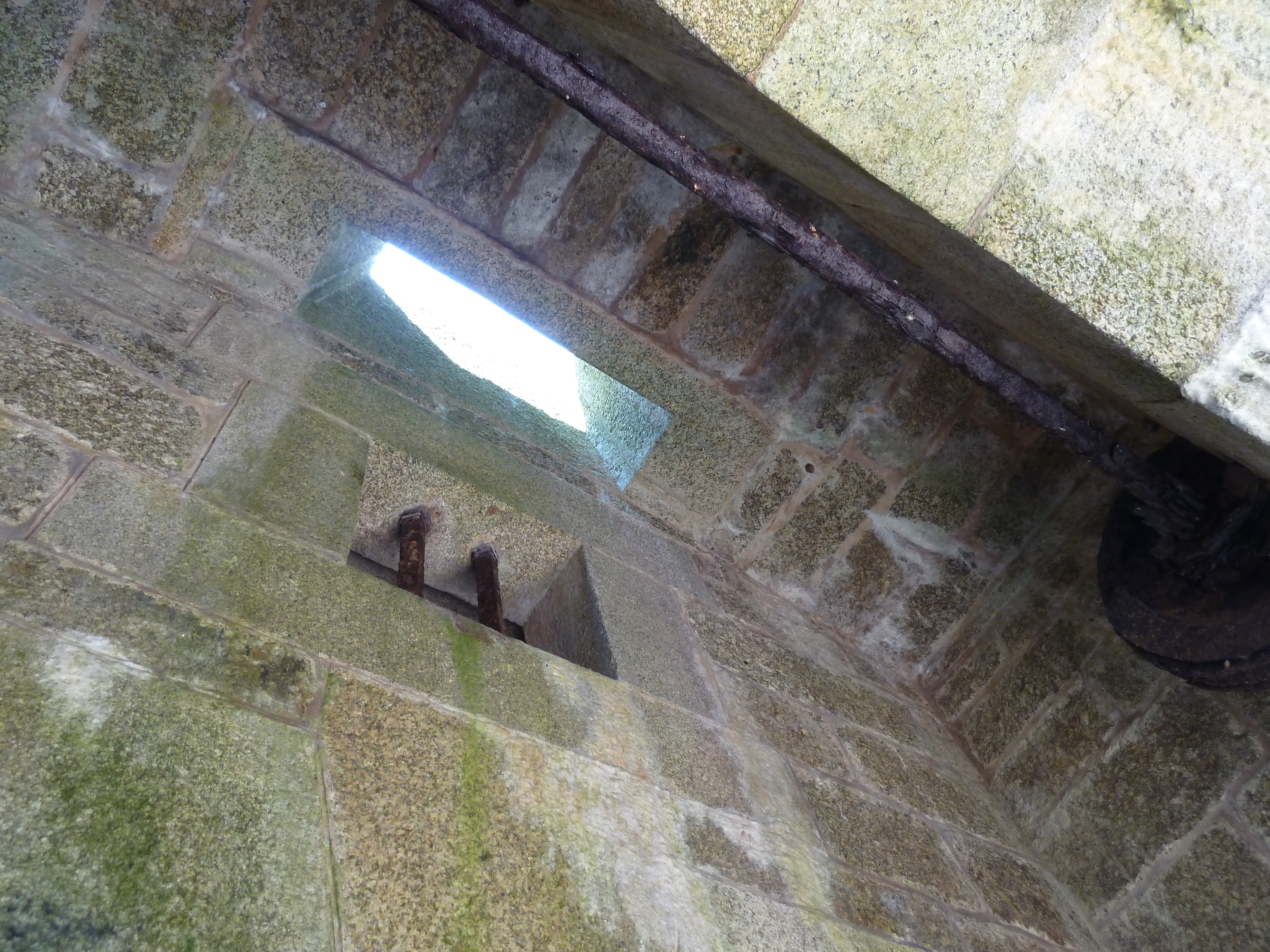 Archipel de Glénan, batterie de Penfret, corps de garde crénelé, créneau de tir au-dessus de l'entrée.Immatriculation