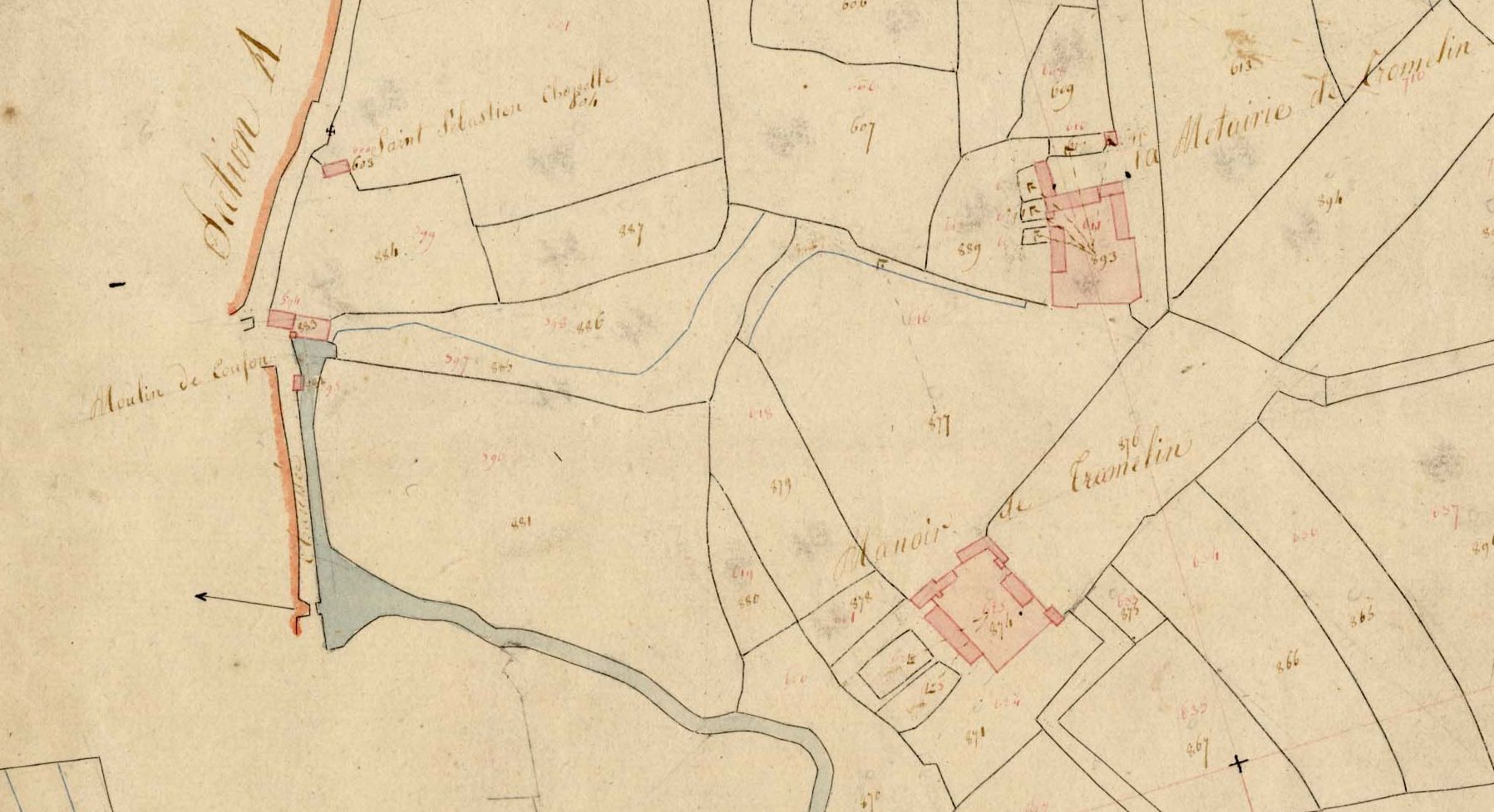 Cadastre 1817, le moulin du Couffon et son étang, SECTION F 2 DE TRÉGUENNOC. (3 P 92/1/20)Immatriculation