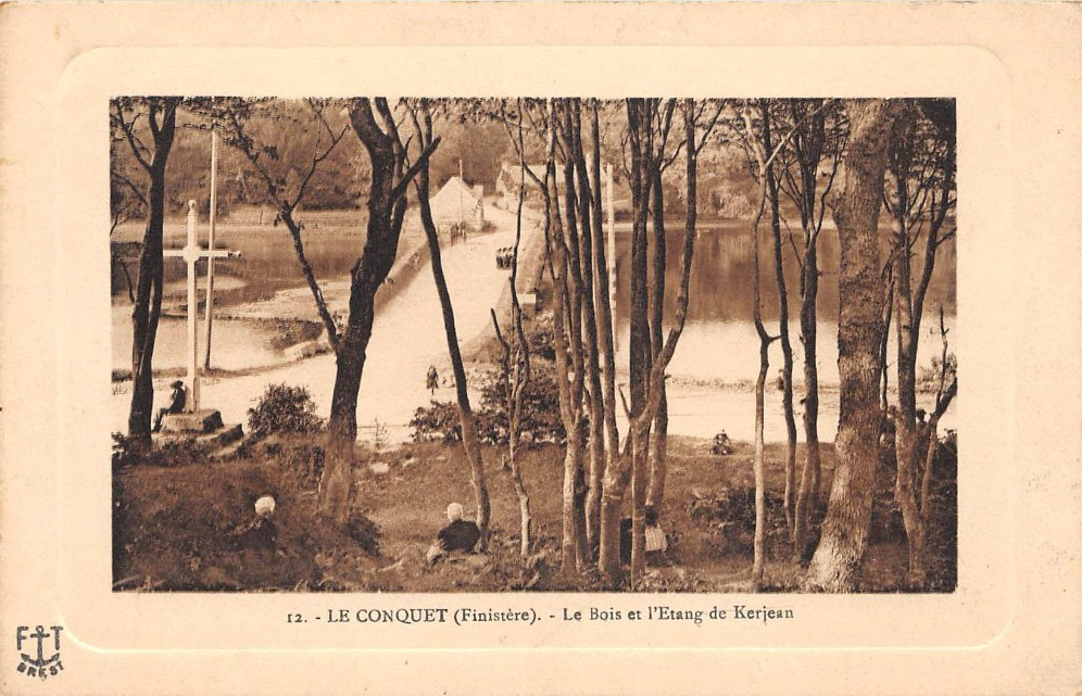 Carte postale, "Le Conquet (Finistère), Le bois et l'Etang de Kerjean", Ed. FT Brest, façade sudImmatriculation