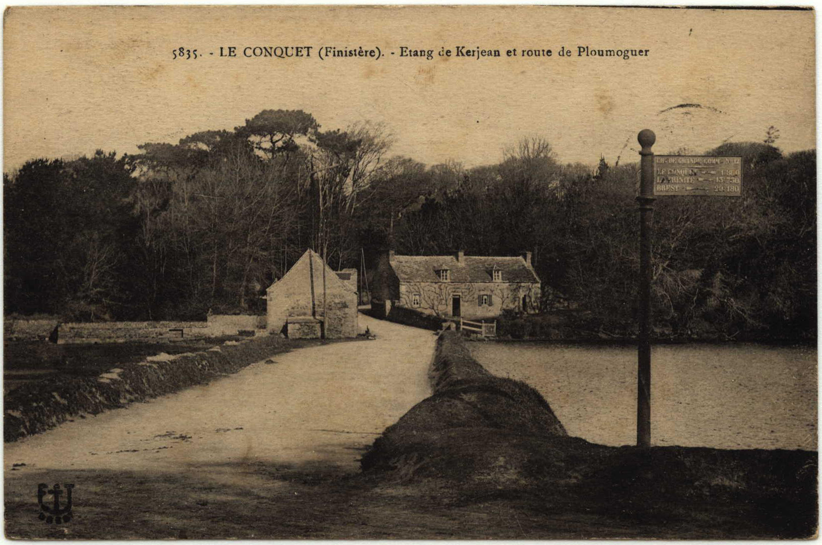 Carte postale, "Le Conquet (Finistère), Etang de Kerjean et route de Ploumoguer", Ed. FT Brest, façade sud et maison du meunierImmatriculation