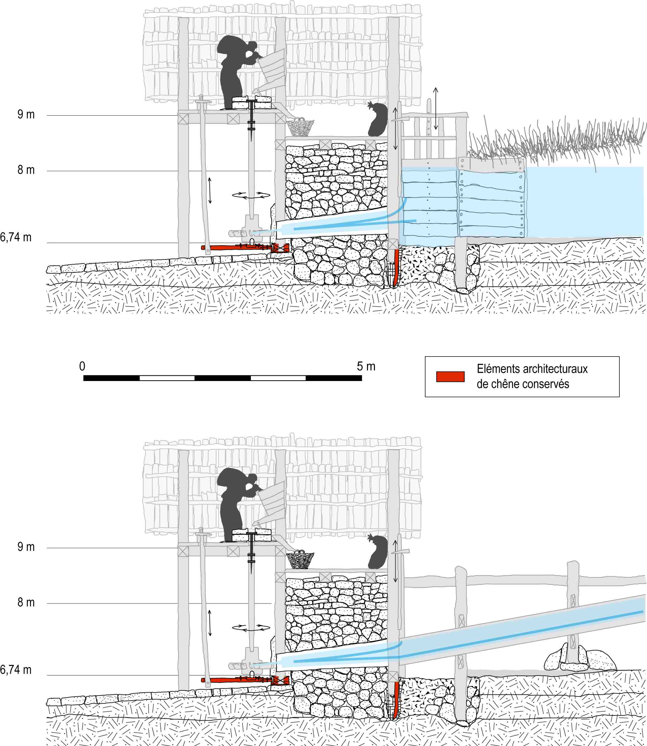 Propositions de restitution du moulin (coupe longitudinale)Immatriculation