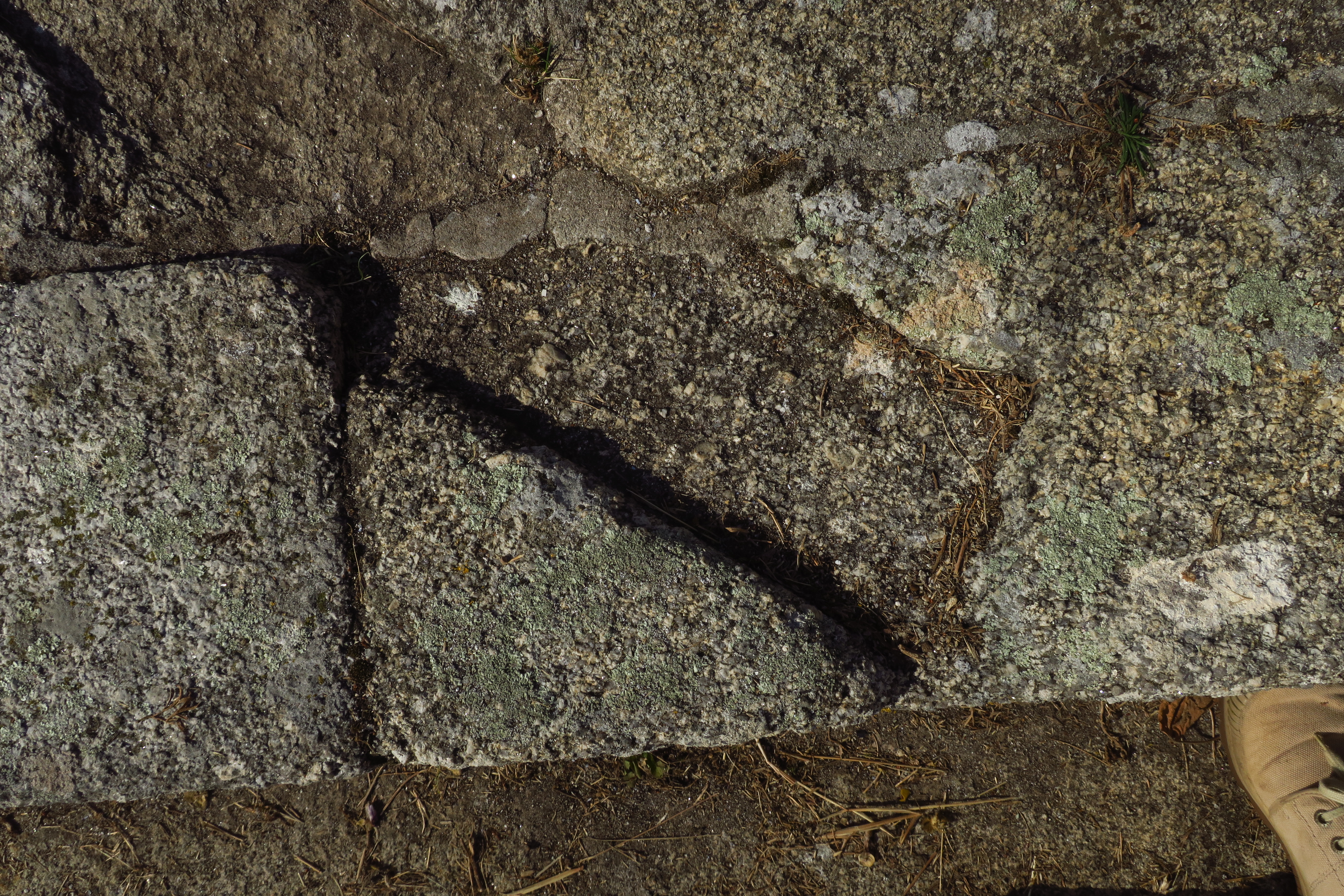 Archipel de Glénan, fort de l'île Cigogne, batterie Ouest, détail de la plate-forme nord, circulaire d'affût.Immatriculation