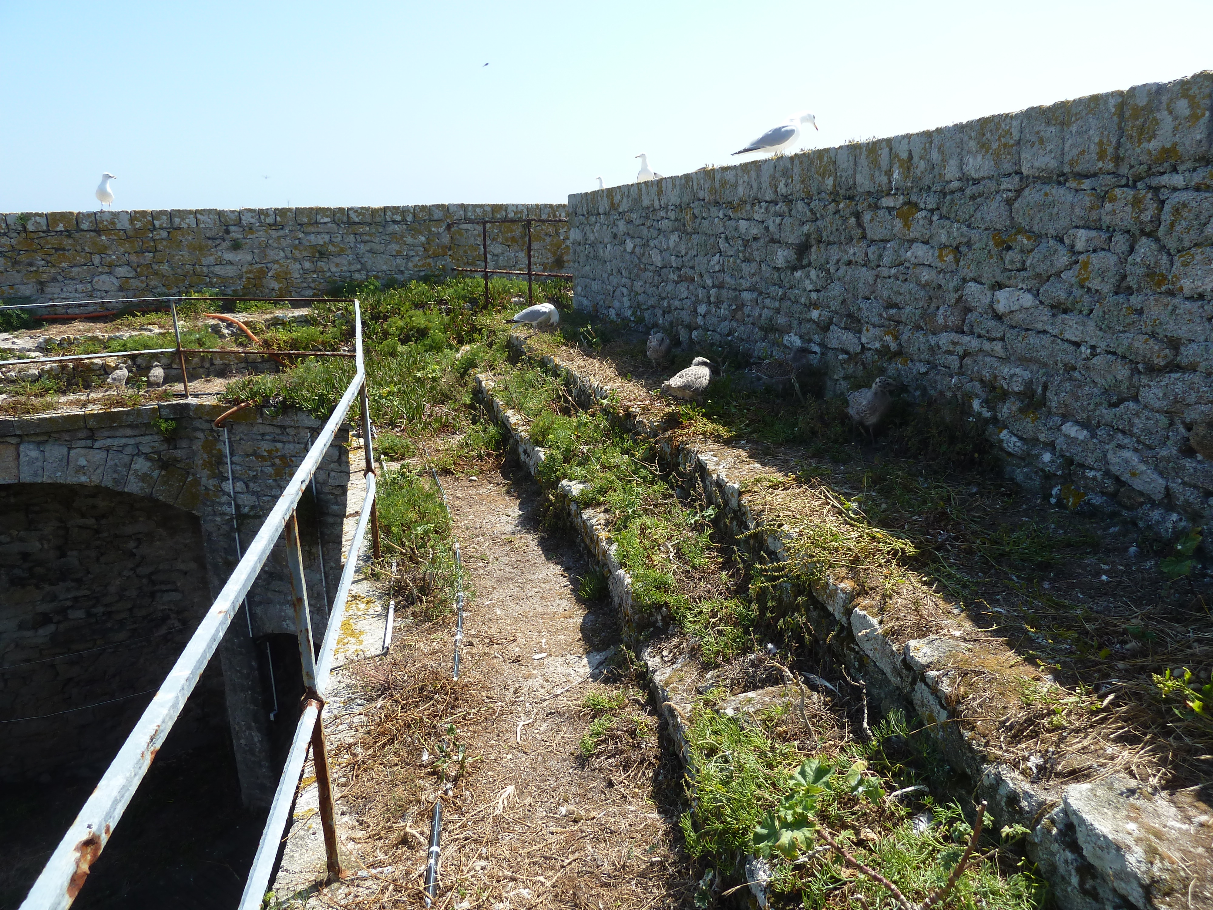 Archipel de Glénan, fort de l'île Cigogne, banquettes d'infanterie en gradins du chemin de ronde sud-est.Immatriculation