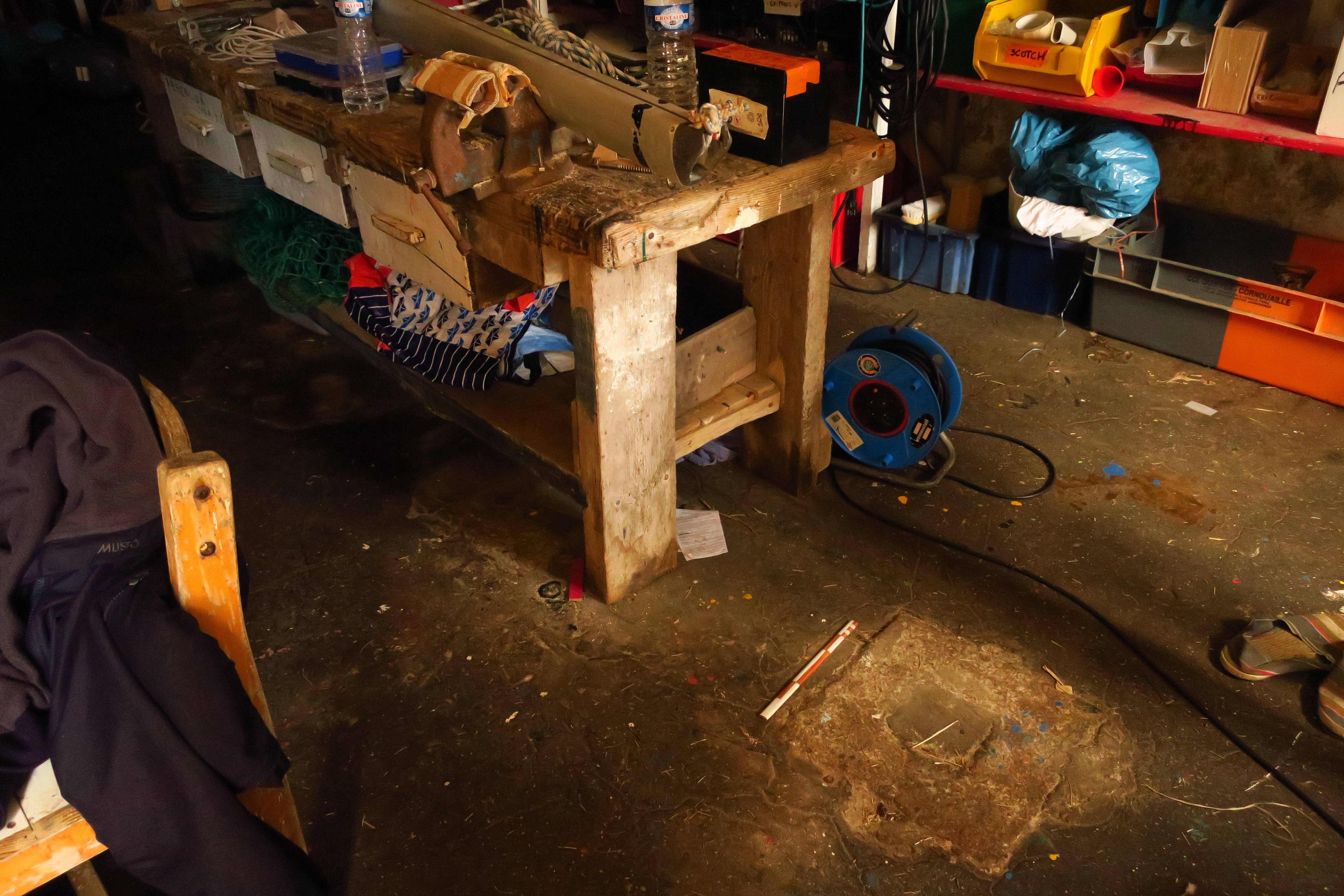 Archipel de Glénan, fort de l'île Cigogne, base de pied de bat-flanc dans le corps de garde.Immatriculation