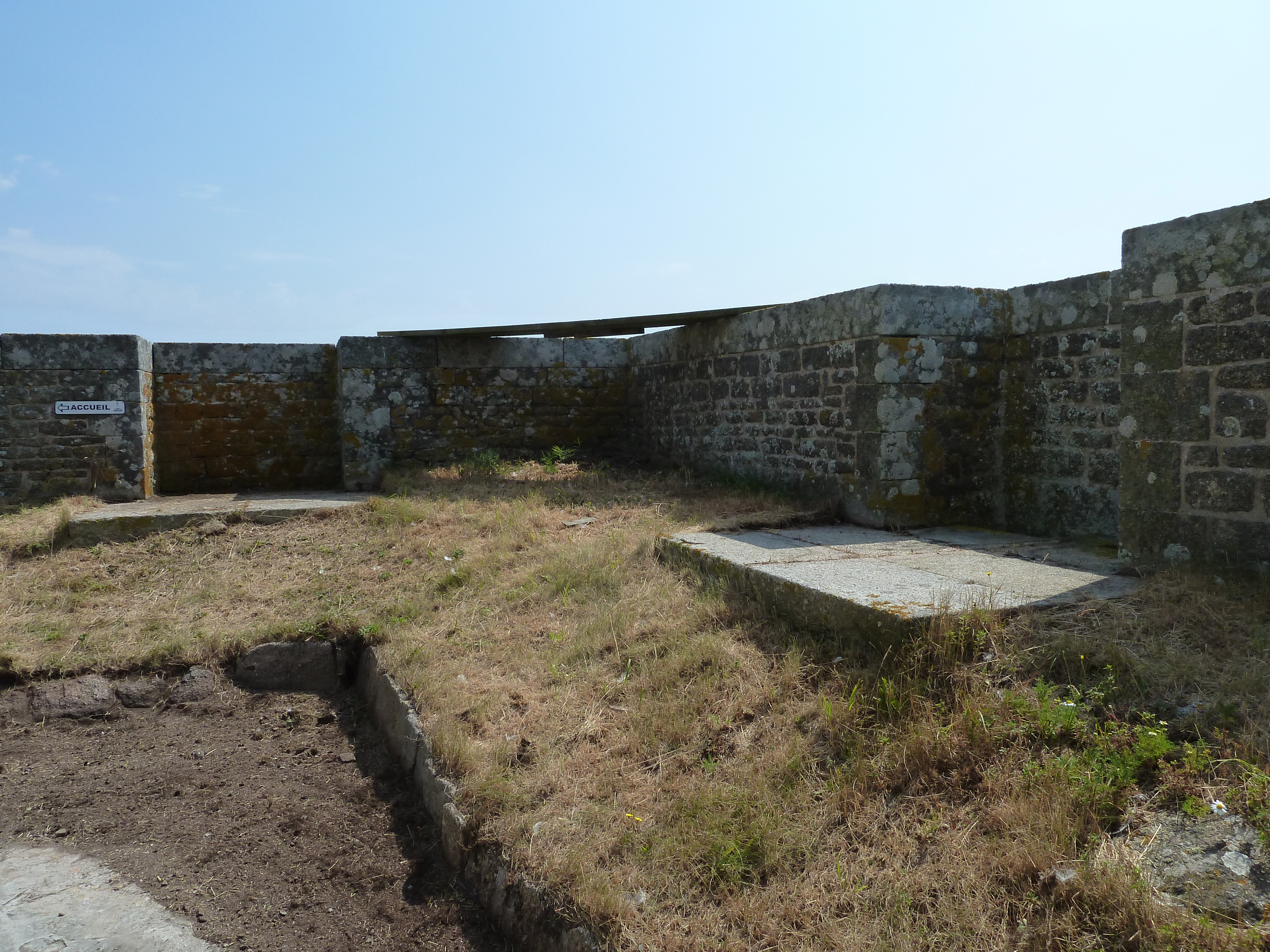Archipel de Glénan, batterie de Penfret, réduit, banquettes d'infanterie en terre et bretèches du parapet.Immatriculation