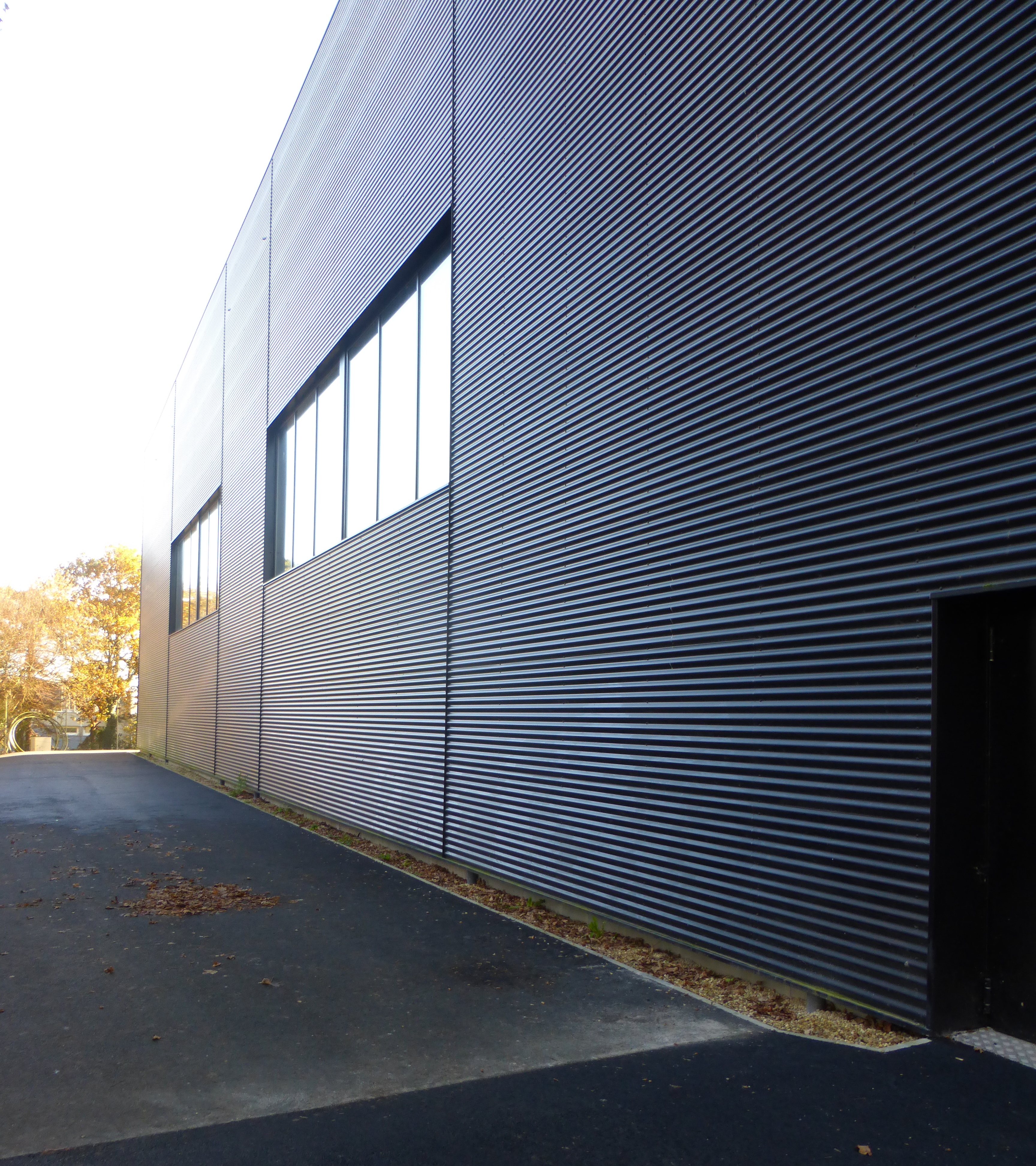Façade nord-est de la nouvelle salle omnisportsImmatriculation