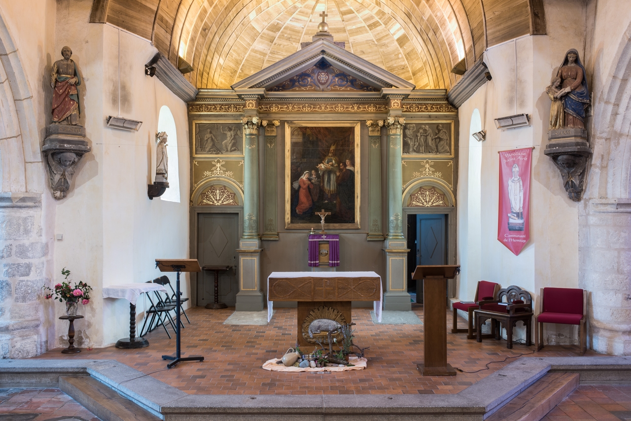 Vue du choeur, de son autel et son retable néo-classiqueImmatriculation