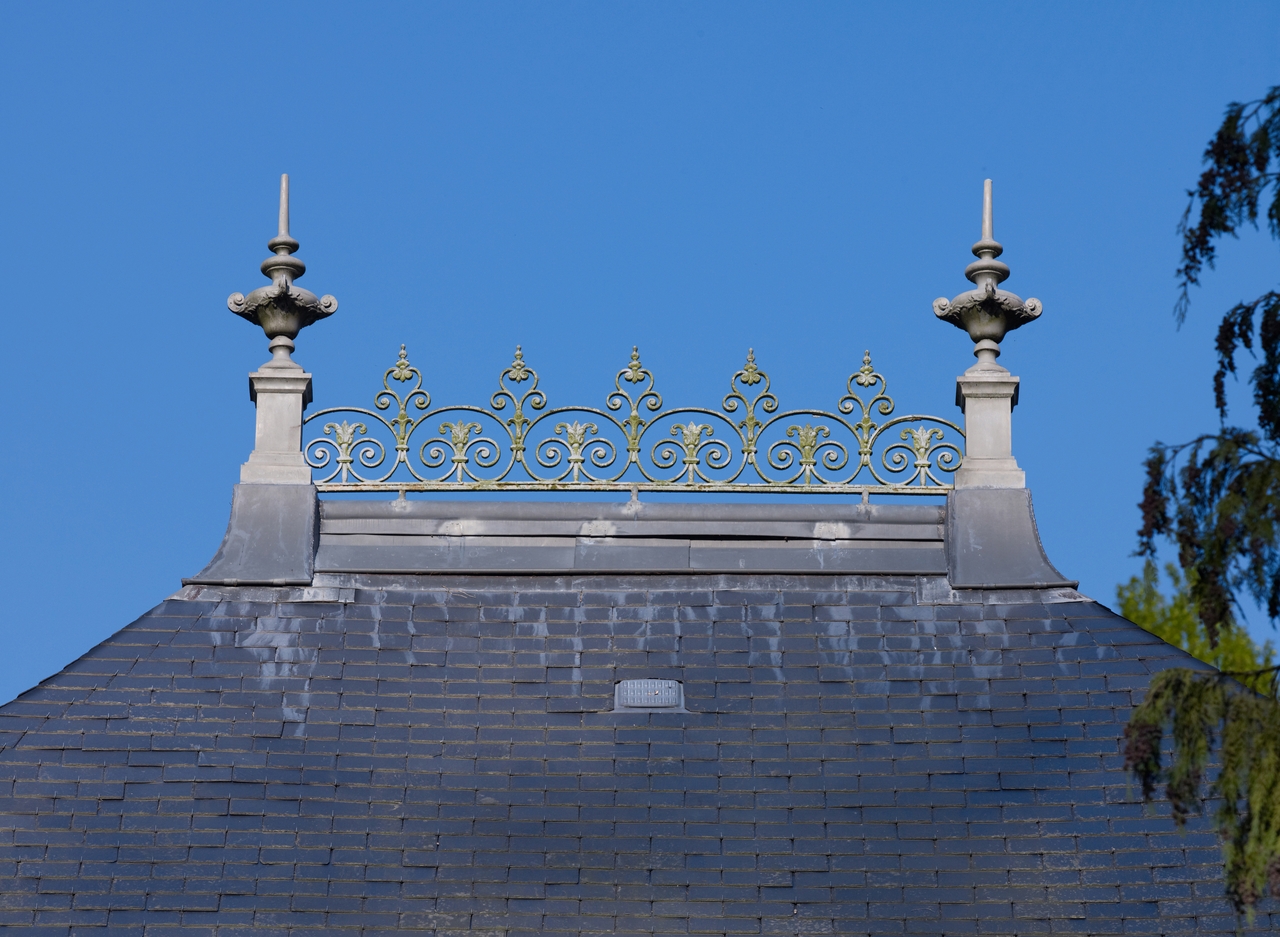 Détail de l'ornementation du toit : crête en zincImmatriculation