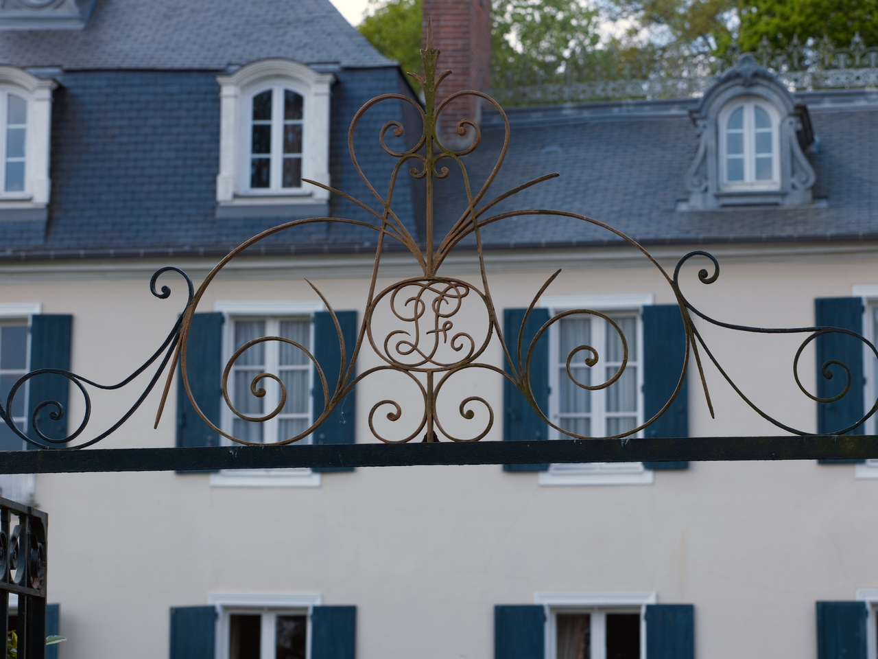Détail de la grille en fer forgé à l'entrée du manoirImmatriculation