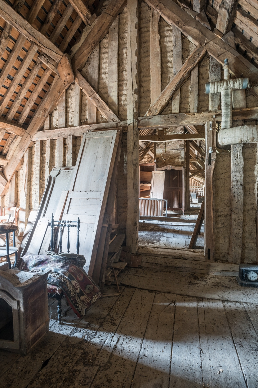 Cloison en pan de bois des combles du logis principalImmatriculation
