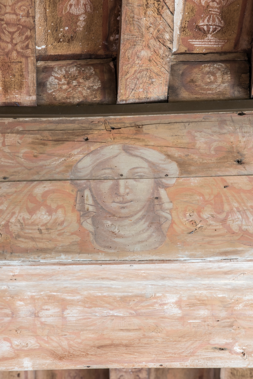 Plafond peint de la salle de chasse. Détail : tête de femmeImmatriculation
