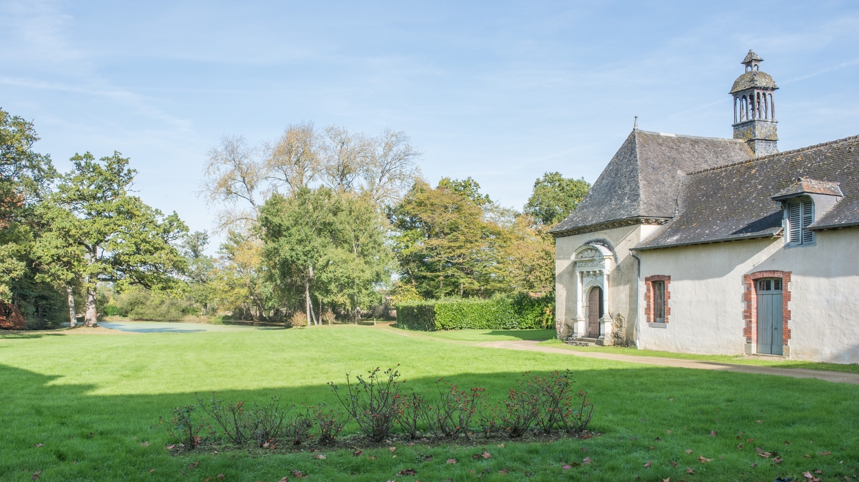 Vue du parc, de l'aile ouest de communs et de la chapelleImmatriculation