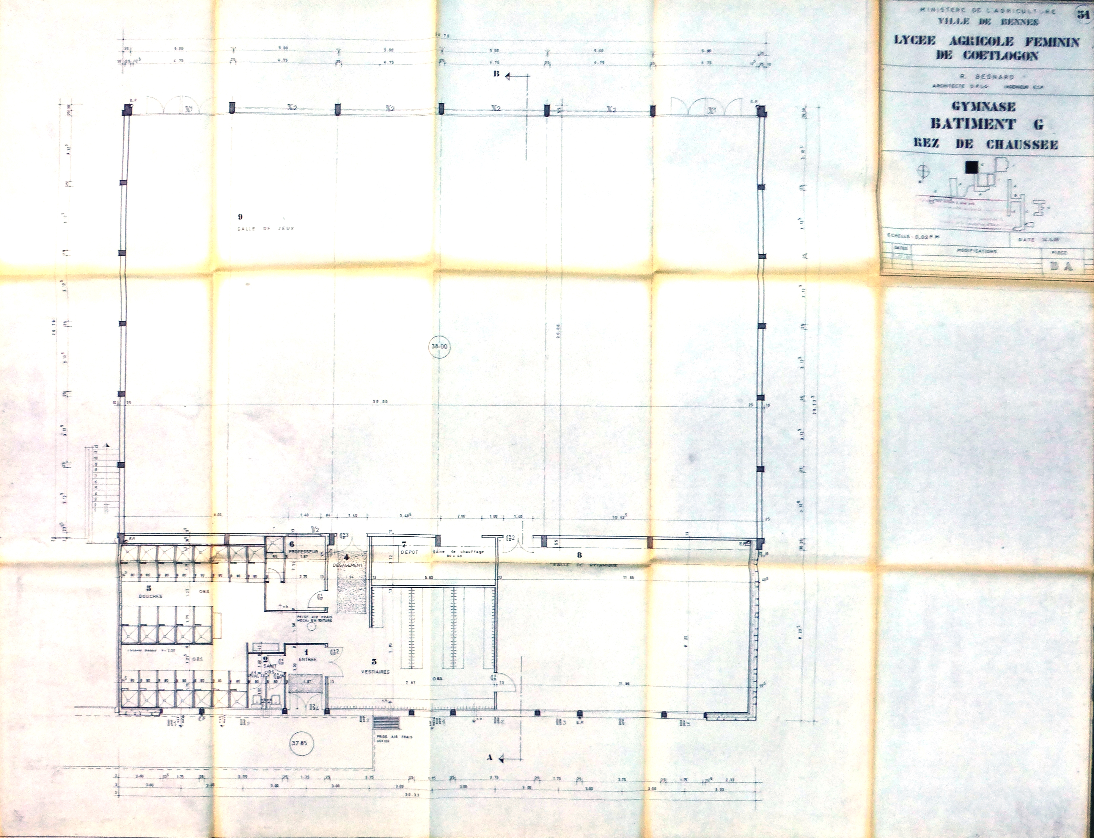 AD Ille-et-Vilaine : 330 W 372. Plan du rez-de-chaussée. R. Besnard, 1966.