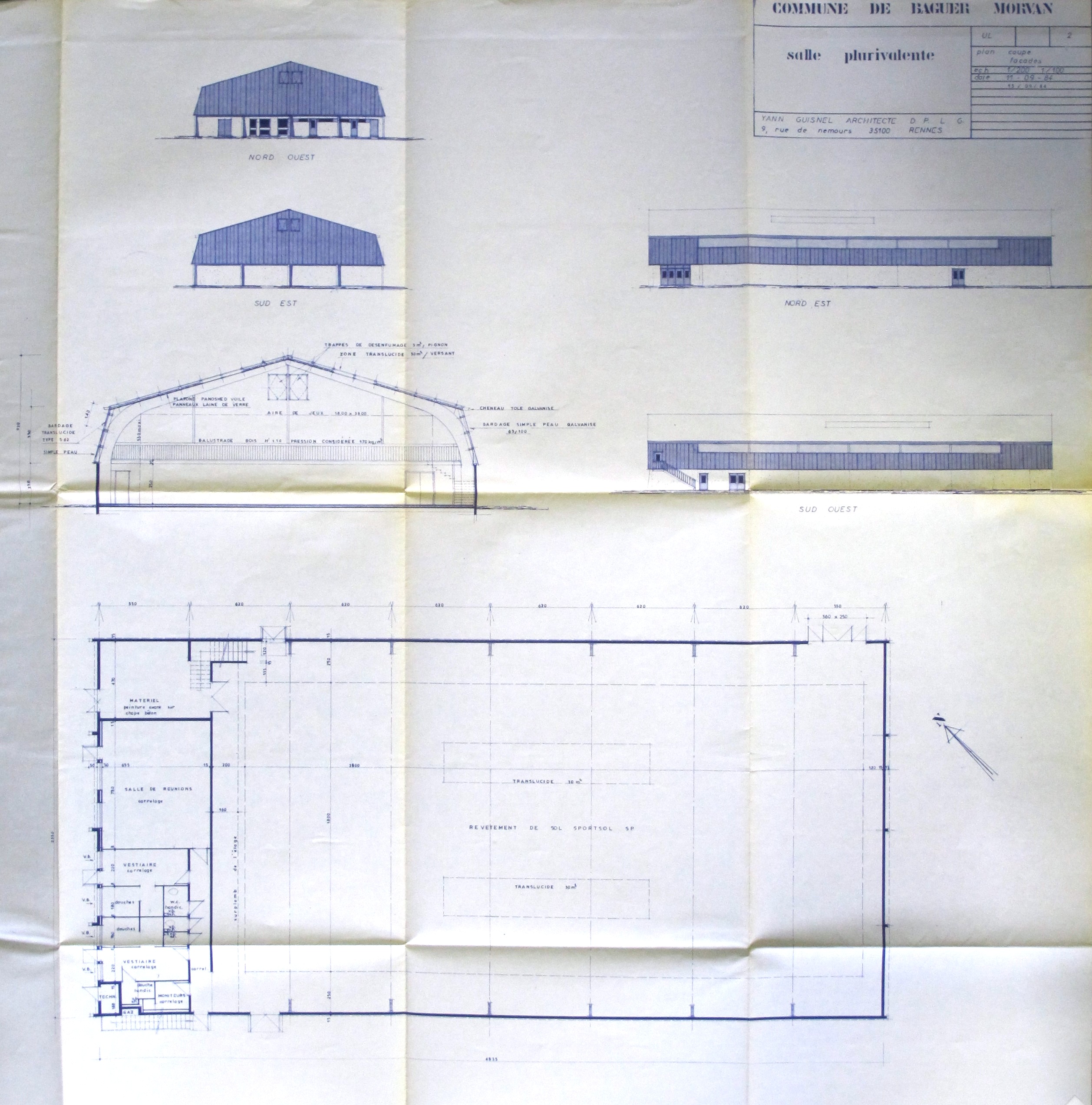 AC Baguer-Morvan : PC n° 35 009 83 S 1818. Plan, coupe, façades. Y. Guisnel, 1984.
