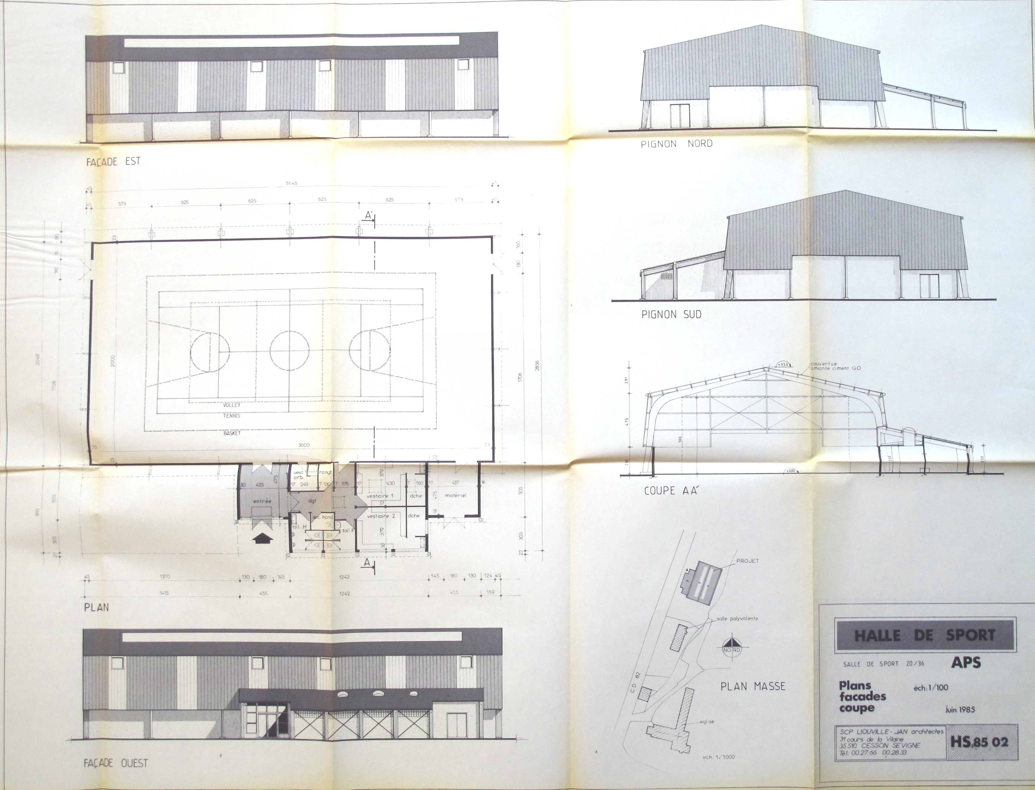 AC Chanteloup : PC n° 035 054 85 B 0023. Plan, façades et coupe. P. Jan et C. Liouville, 1985.
