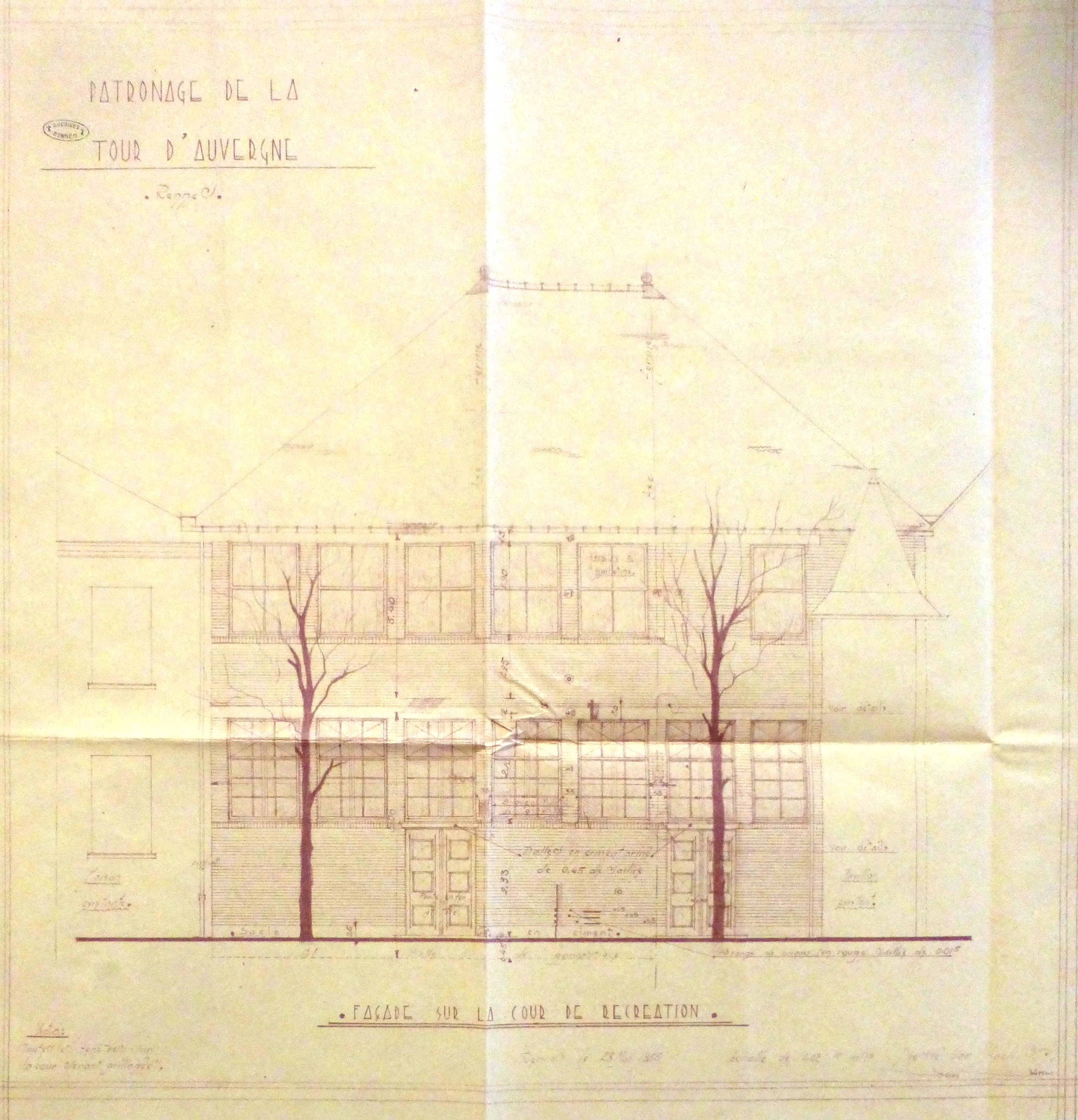 A.C. Rennes : 748 W 14. Façade sur la cour de récréation. L. Chouinard, 1935.
