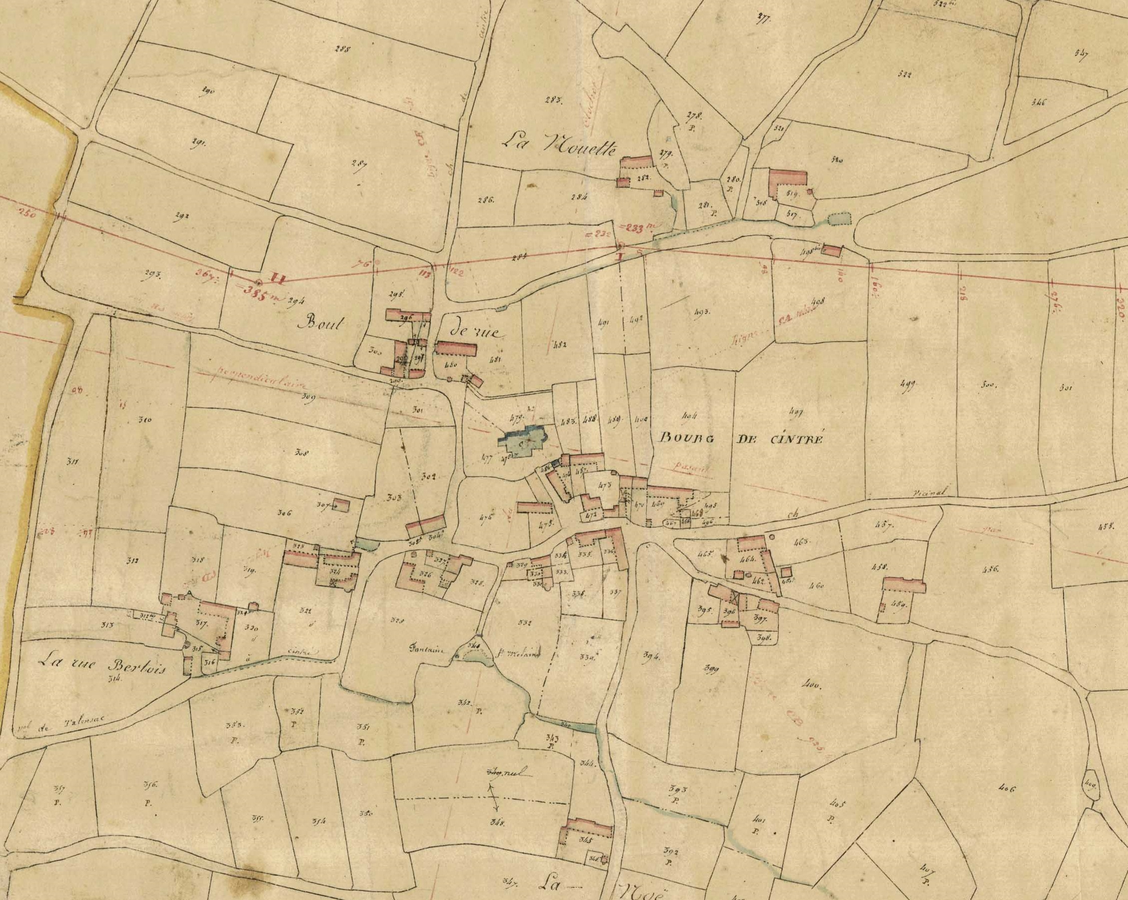 Extrait du cadastre napoléonien de 1829, section B dite du bourg, 2e feuilleImmatriculation