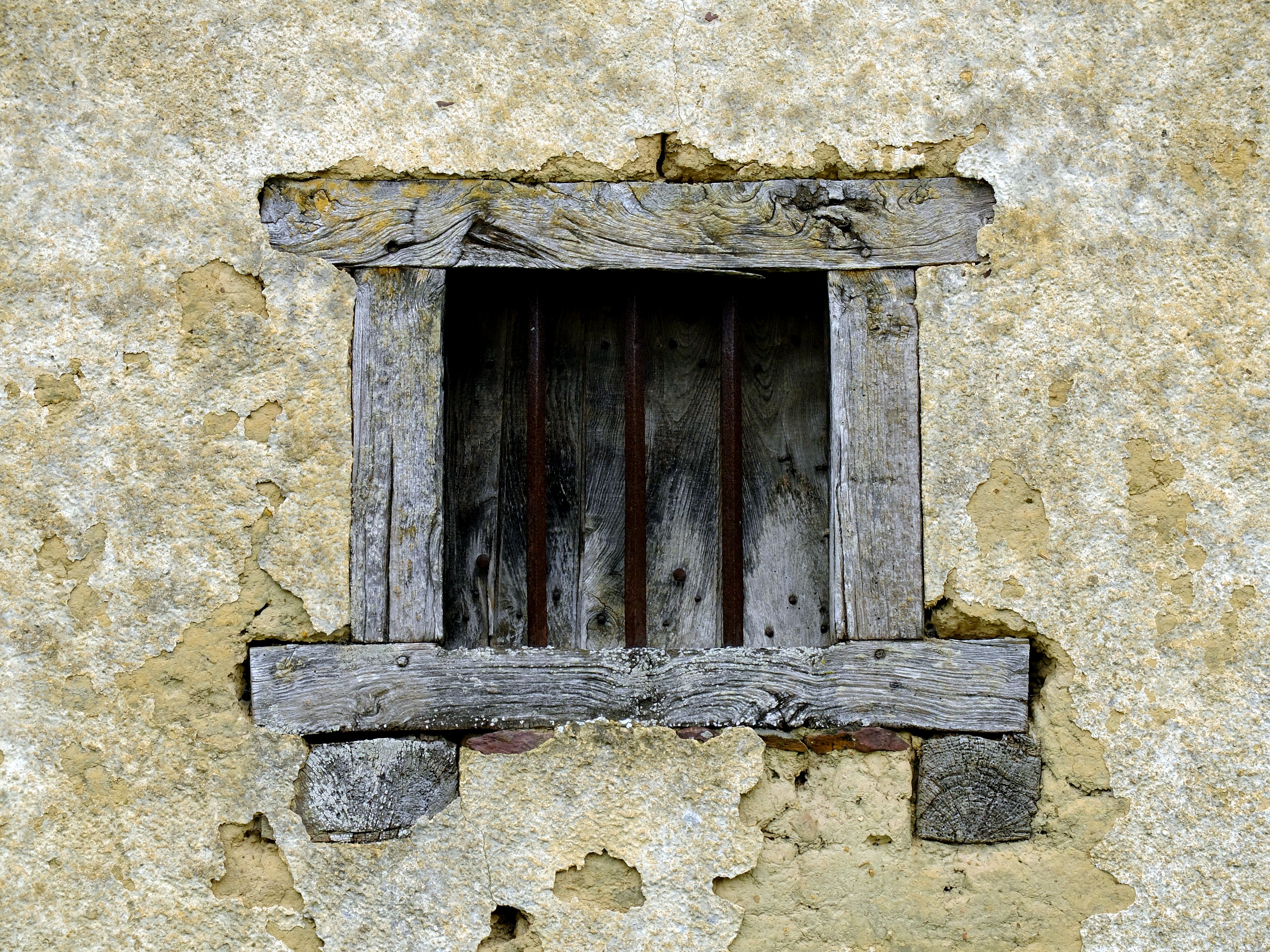 Détail d'une ouverture de la façade nord-ouest de l'écurie (état en 2017)Immatriculation