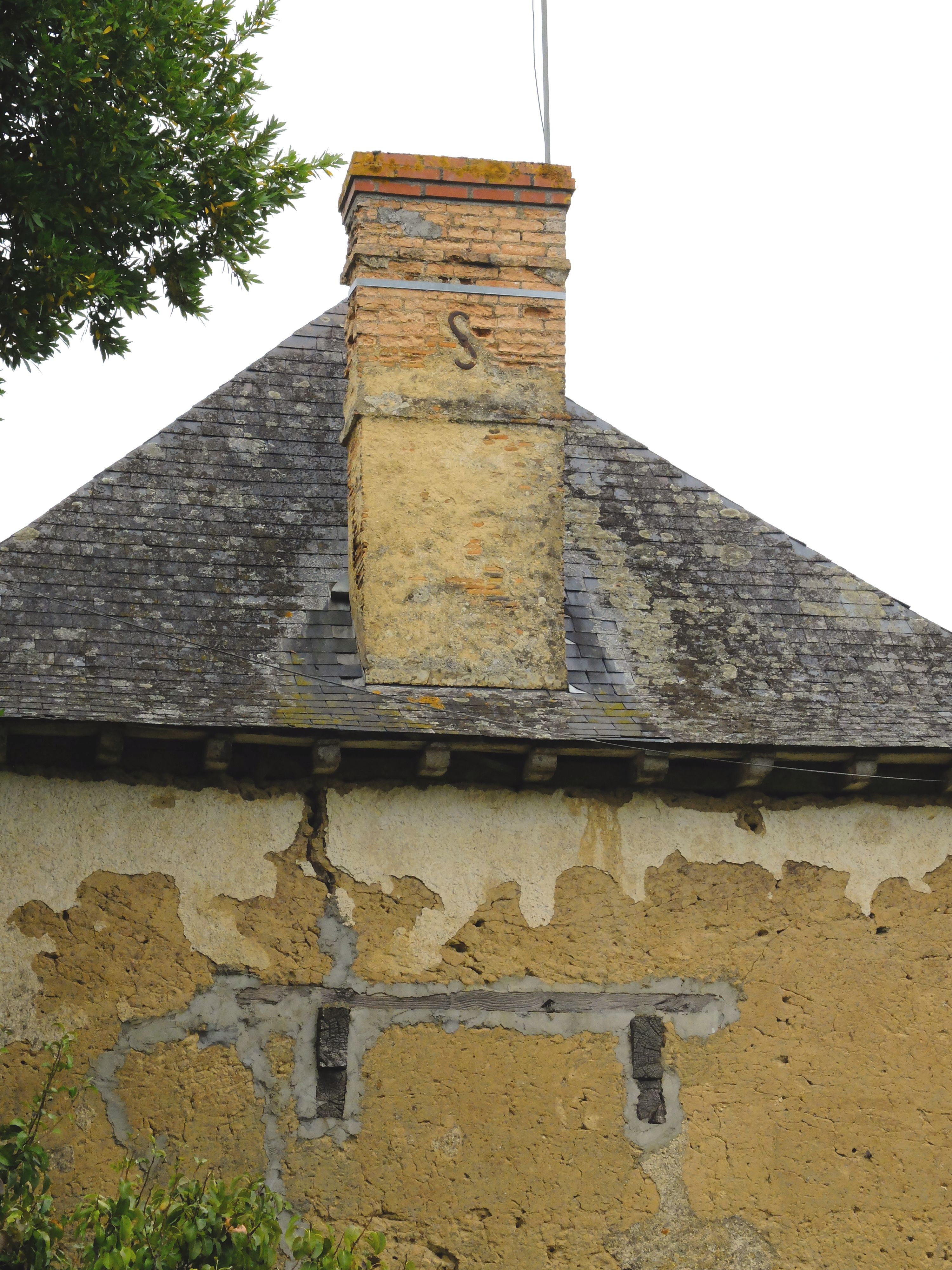 Détail de la souche de cheminée sur la façade ouest du logis (état en 2017)Immatriculation