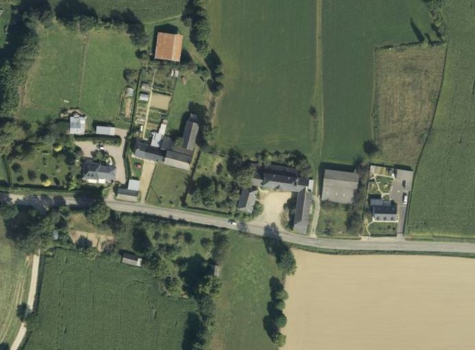 Vue aérienne de la ferme modèle de la Bréhaudais (Géobretagne)Immatriculation