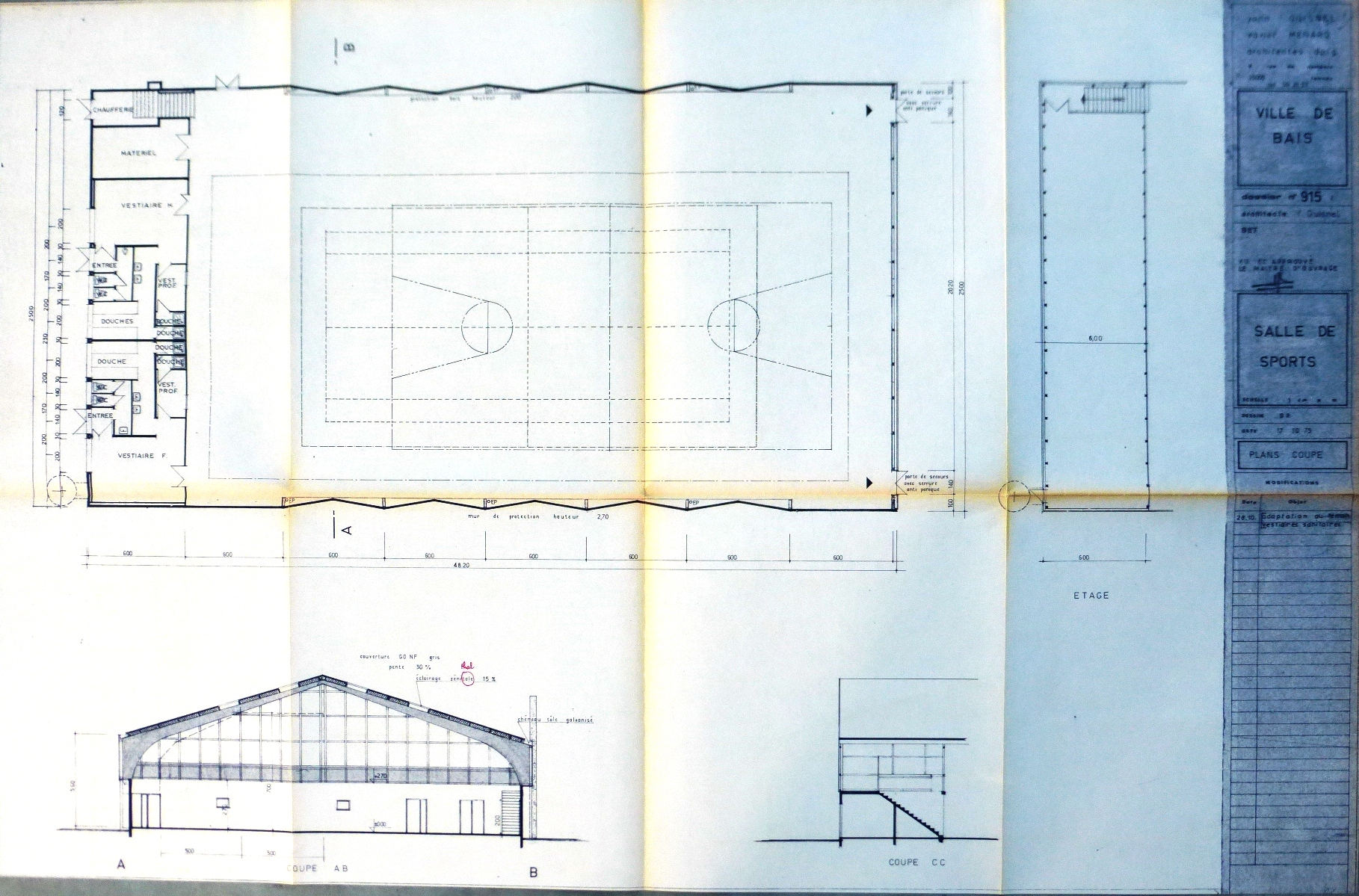 AD Ille-et-Vilaine : 1240 W 63. Plans et coupes. Y. Guisnel, 1975.