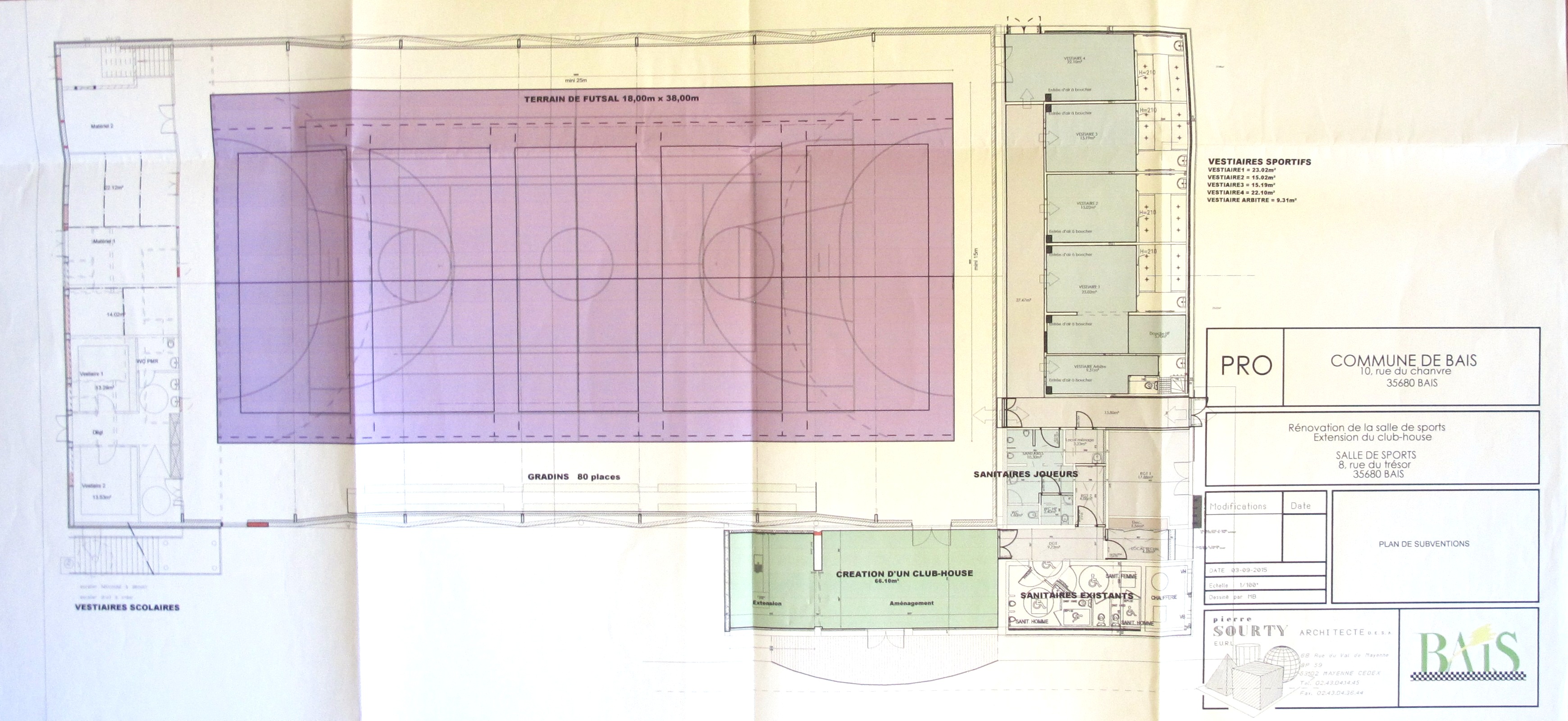 • AC Bais : 1 M. Rénovation de la salle de sports. P. Sourty, 2015.